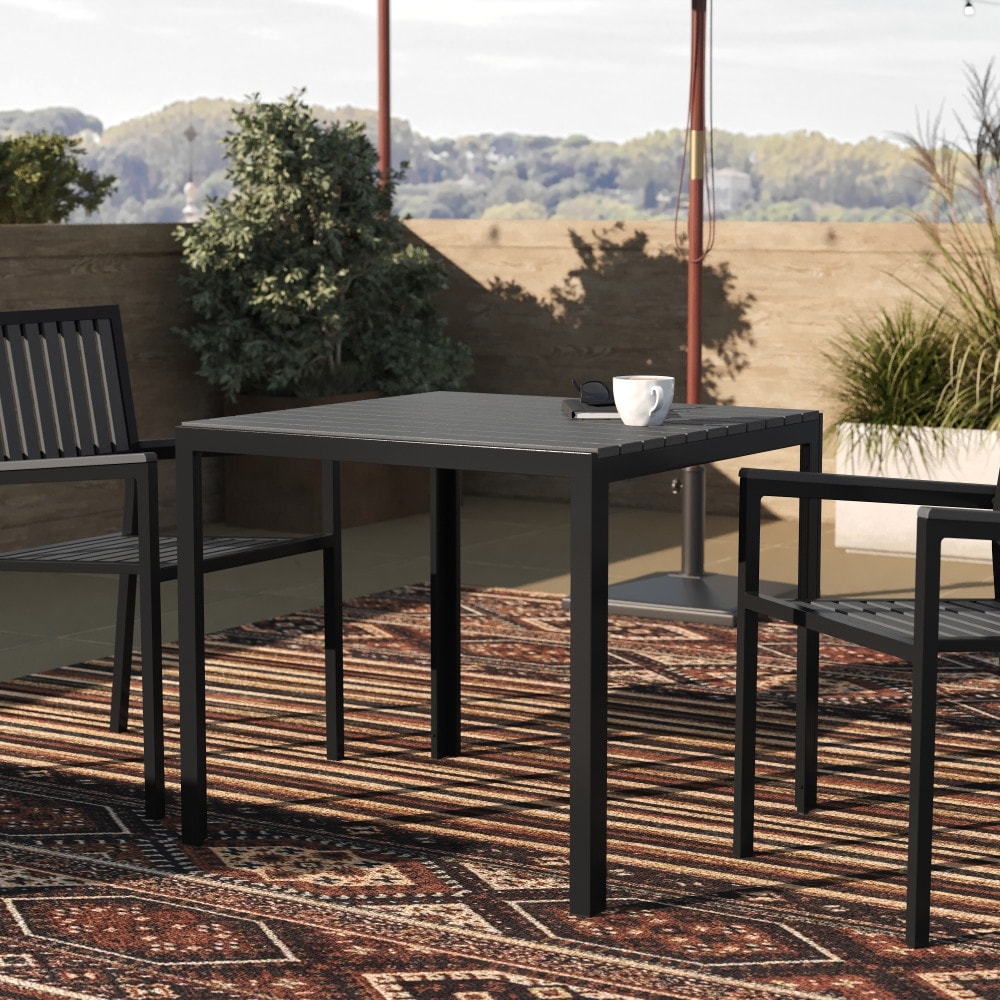 Indoor/Outdoor Commercial Steel Patio Table with Poly Resin Slatted Top - 31.5"W x 31.5"D x 28.75"H