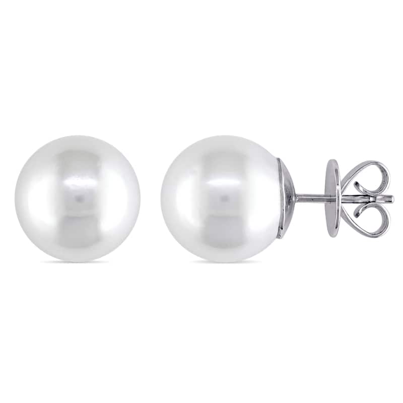 Miadora Signature Collection 14k White Gold White South Sea Pearl Stud Earrings (12.5-13mm)
