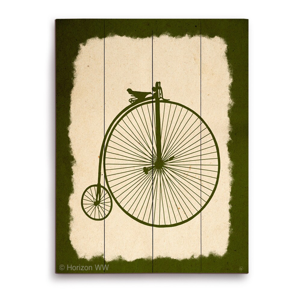 'Penny Farthing on Parchment Olive' Wooden Wall Graphic