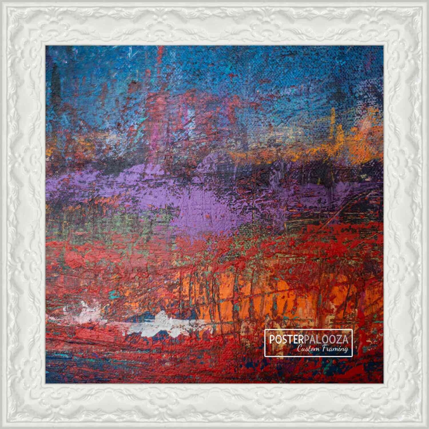 13x13 Frame Ornate Glossy White Complete Wood Square Picture Frame with UV Acrylic, Foam Board Backing, & Hardware