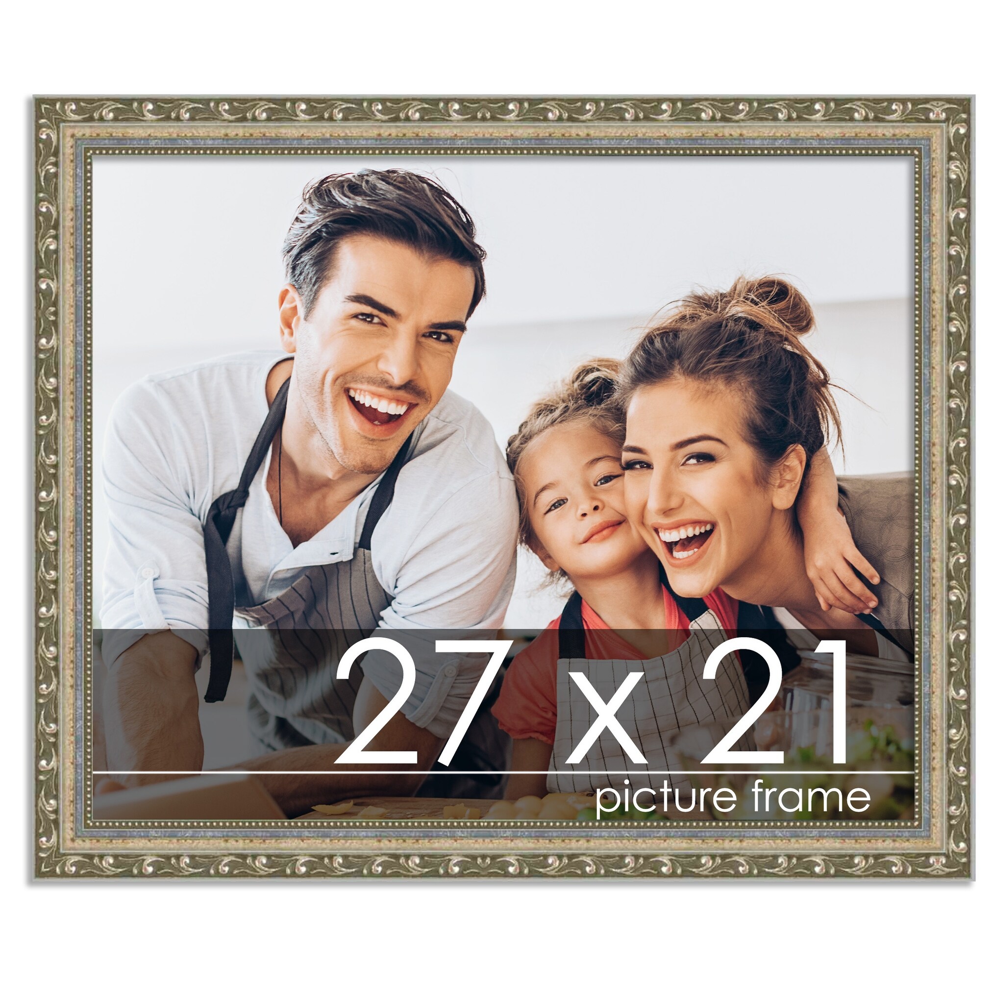 27x21 Frame Silver Ornate Antique Solid Complete Wood Picture Frame with UV Acrylic, Foam Board Backing, & Hardware