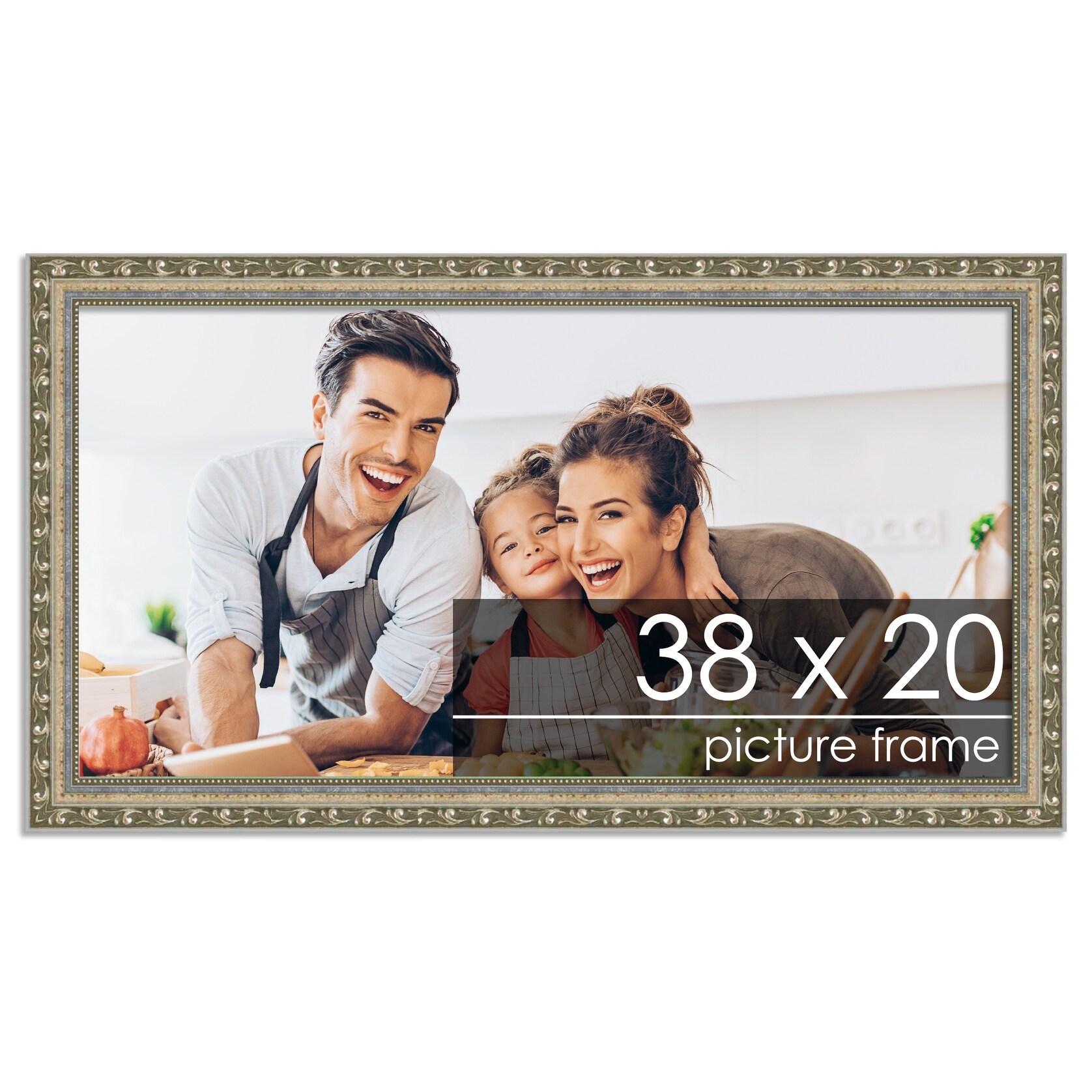38x20 Frame Silver Ornate Antique Solid Complete Wood Picture Frame with UV Acrylic, Foam Board Backing, & Hardware