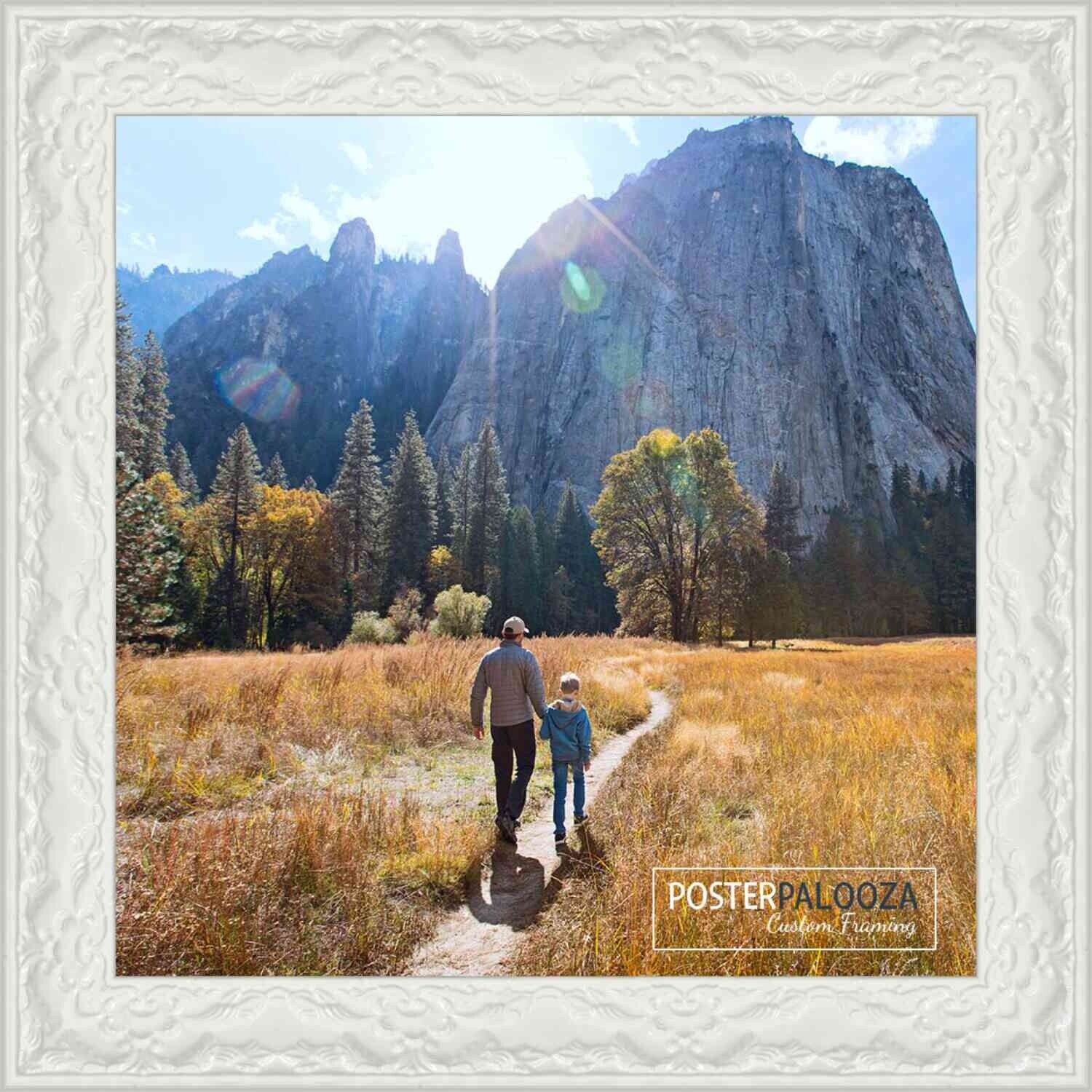 11x16 Frame Ornate Glossy White Complete Wood Picture Frame with UV Acrylic, Foam Board Backing, & Hardware