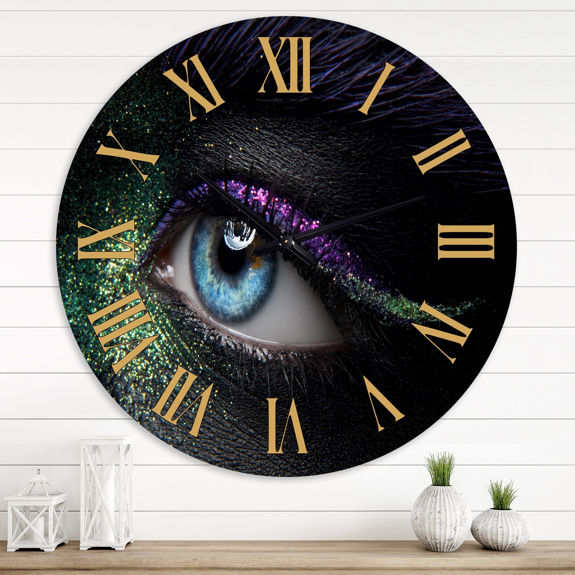 Designart 'Female Eyes With Green & Purple Pigment & Sparkles' Modern Large Wall Clock