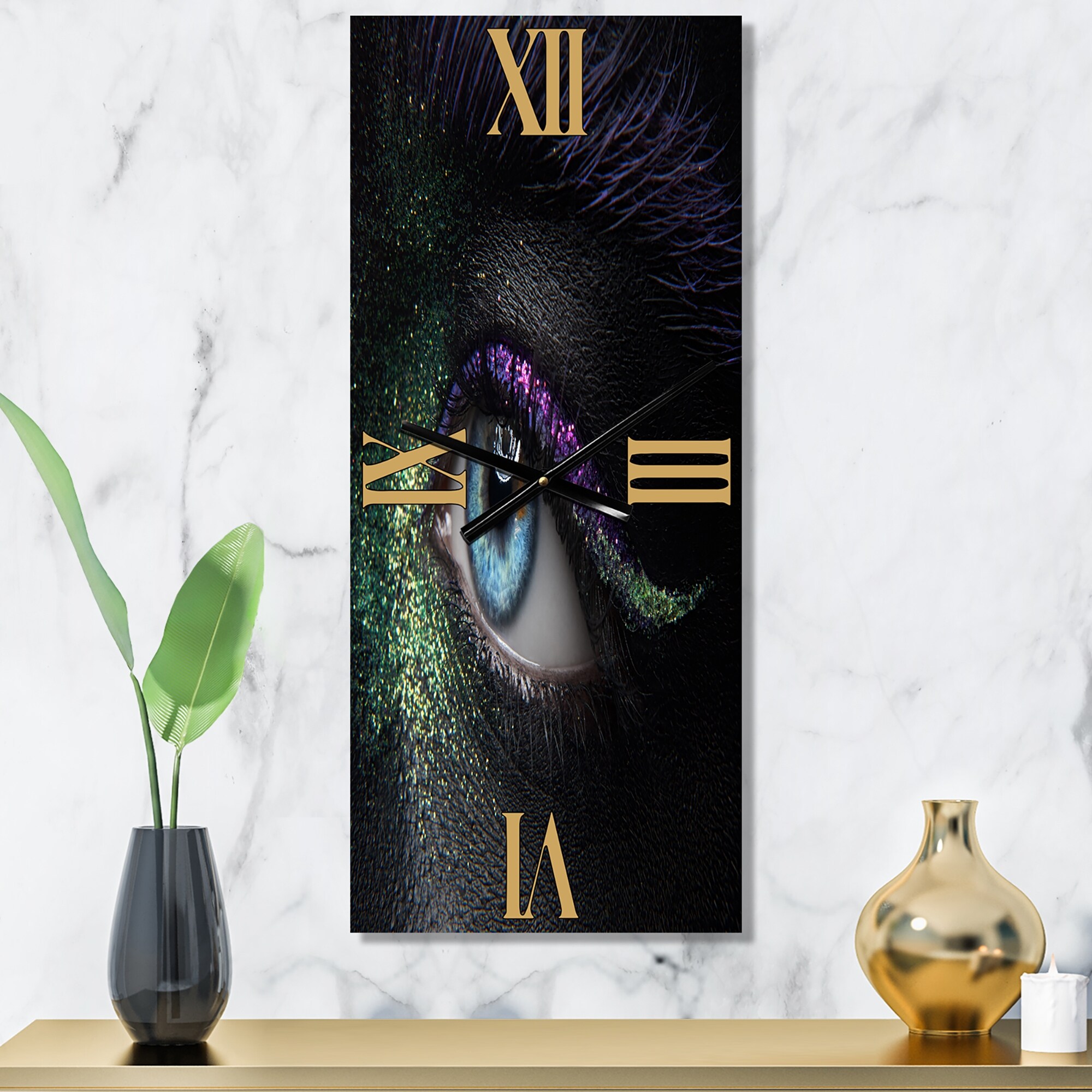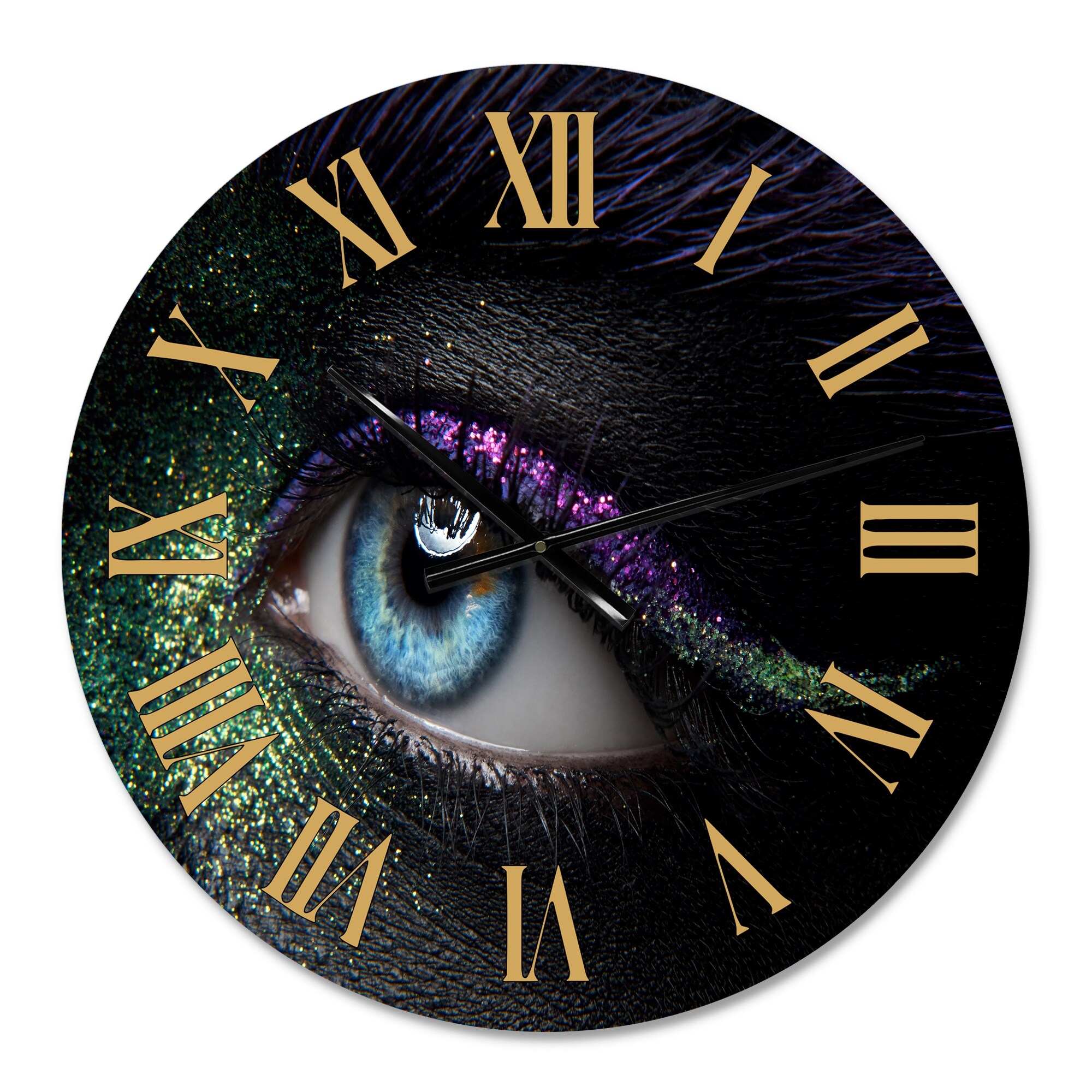Designart 'Female Eyes With Green & Purple Pigment & Sparkles' Modern wall clock