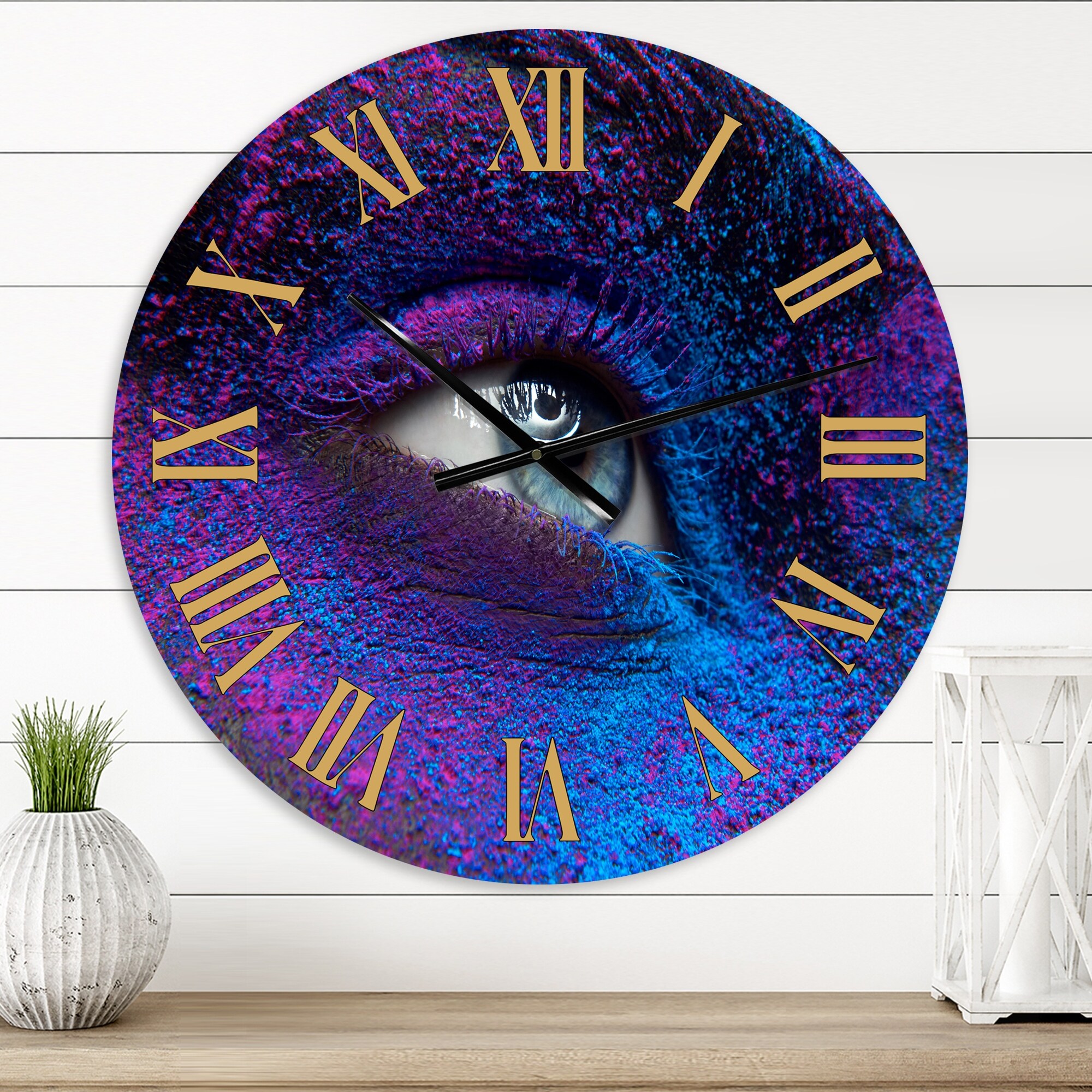 Designart 'Female Eye With Dry Paint Dust Pigment on Face' Modern wall clock