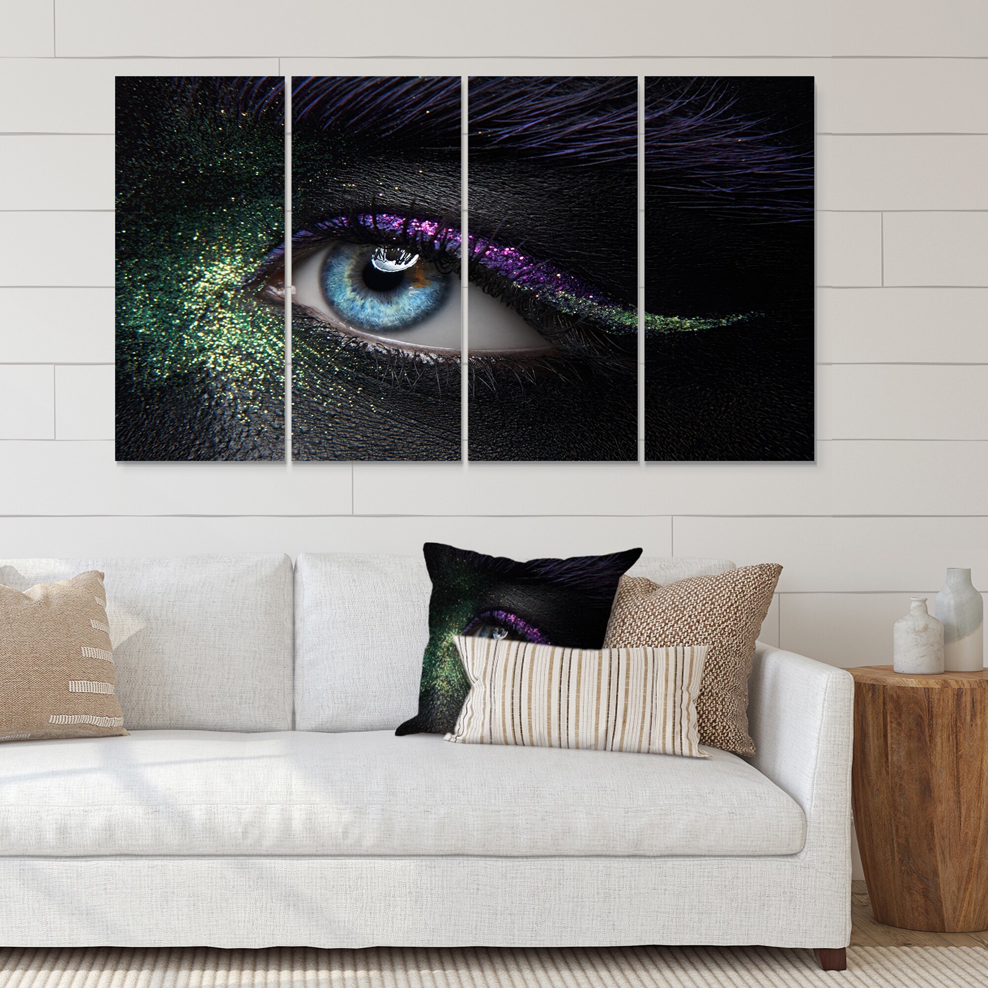 Designart "Female Eyes With Green & Purple Pigment & Sparkles" Modern Canvas Wall Art Print