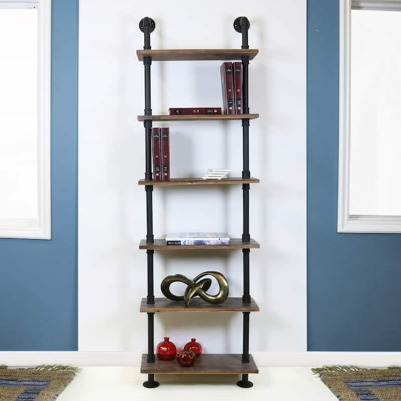 Emitt Tall Bookshelf Black Pipe Frame with Weathered Maple Shelves