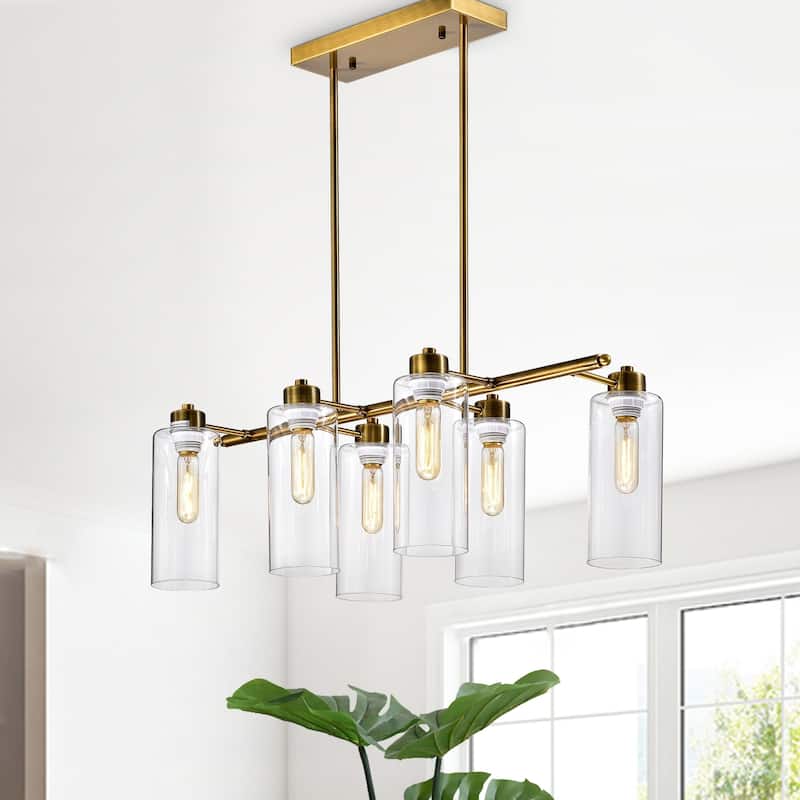 Pameron 6-light Satin Gold Chandelier with Glass Pillar Shades
