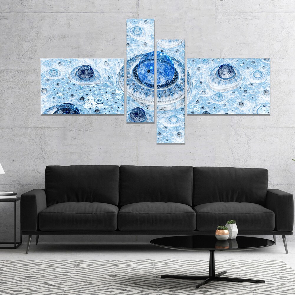 Designart "Blue Fractal Planet of Bubbles" Abstract Wall Art Canvas