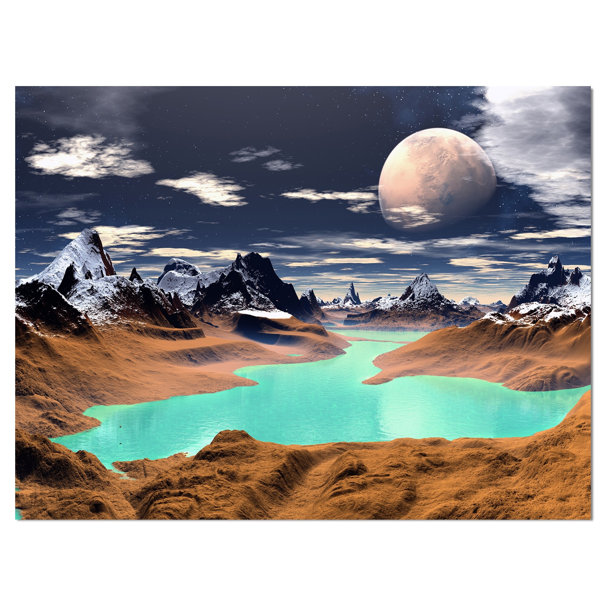 Designart "The Green Lake Planet" Digital Art on wrapped Canvas - Blue