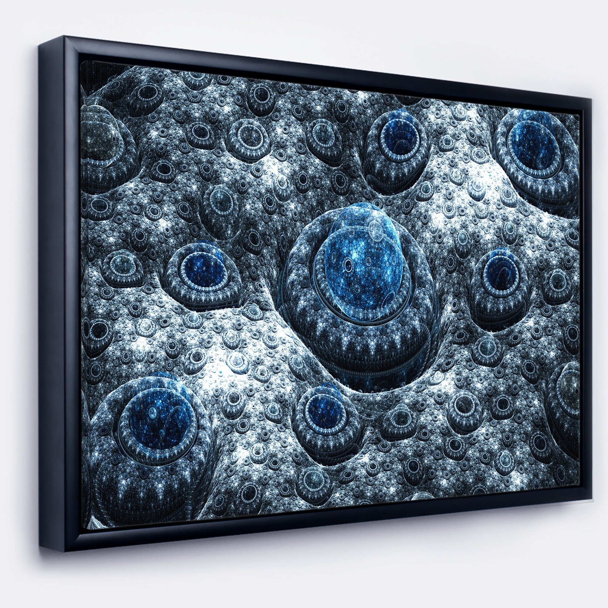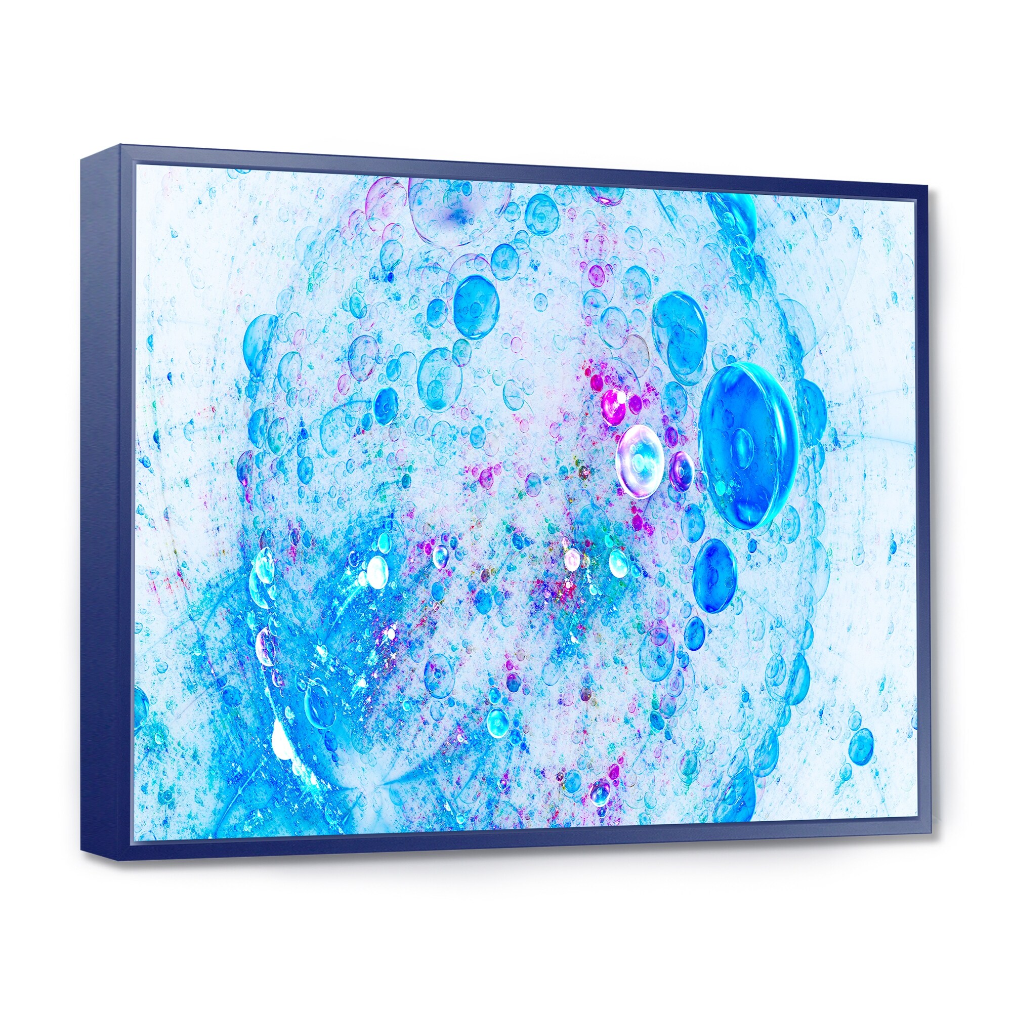 Designart "Blue Fractal Planet of Bubbles" Abstract Wall Art Framed Canvas