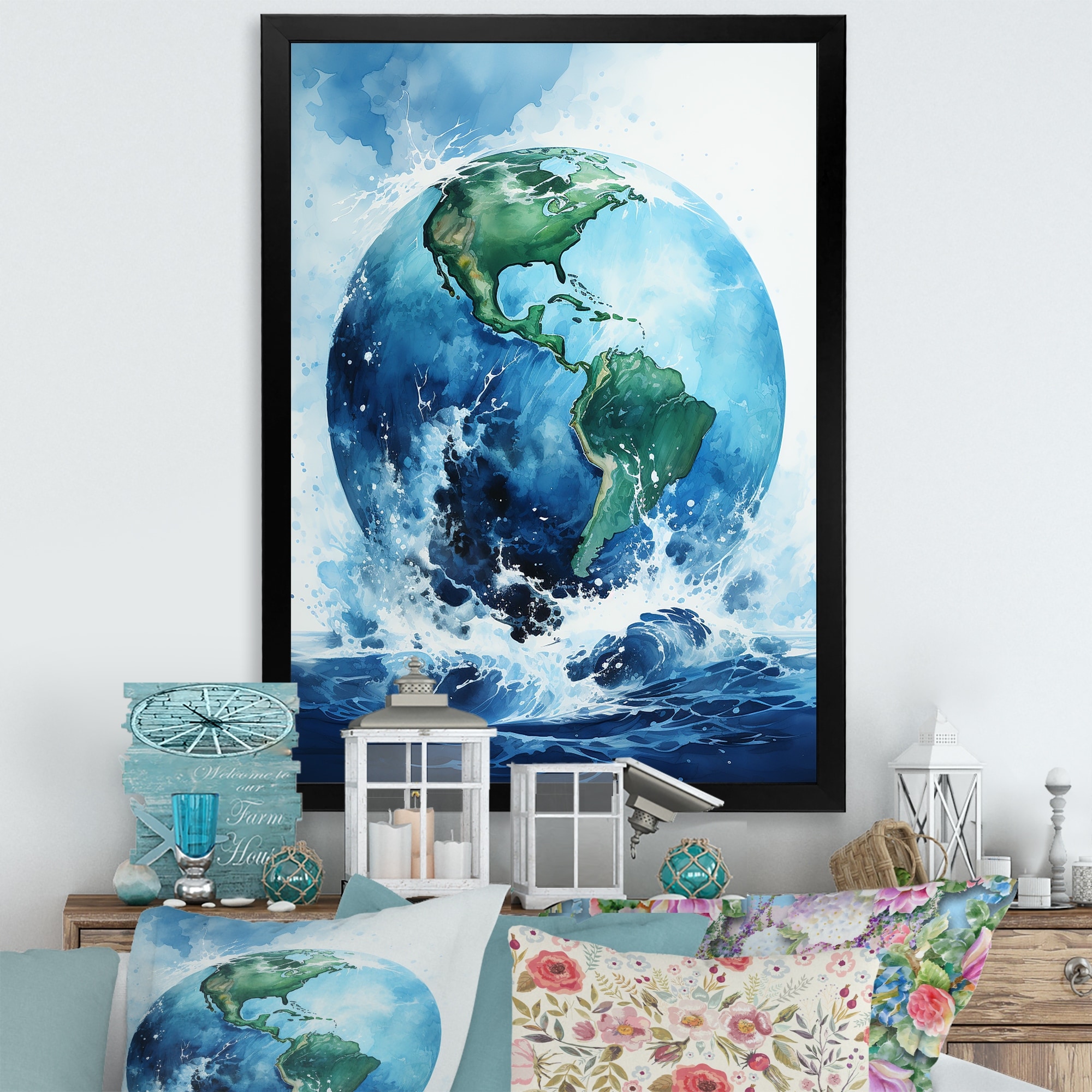 Designart "Earth Blue Planet III" Earth Framed Wall Art Prints