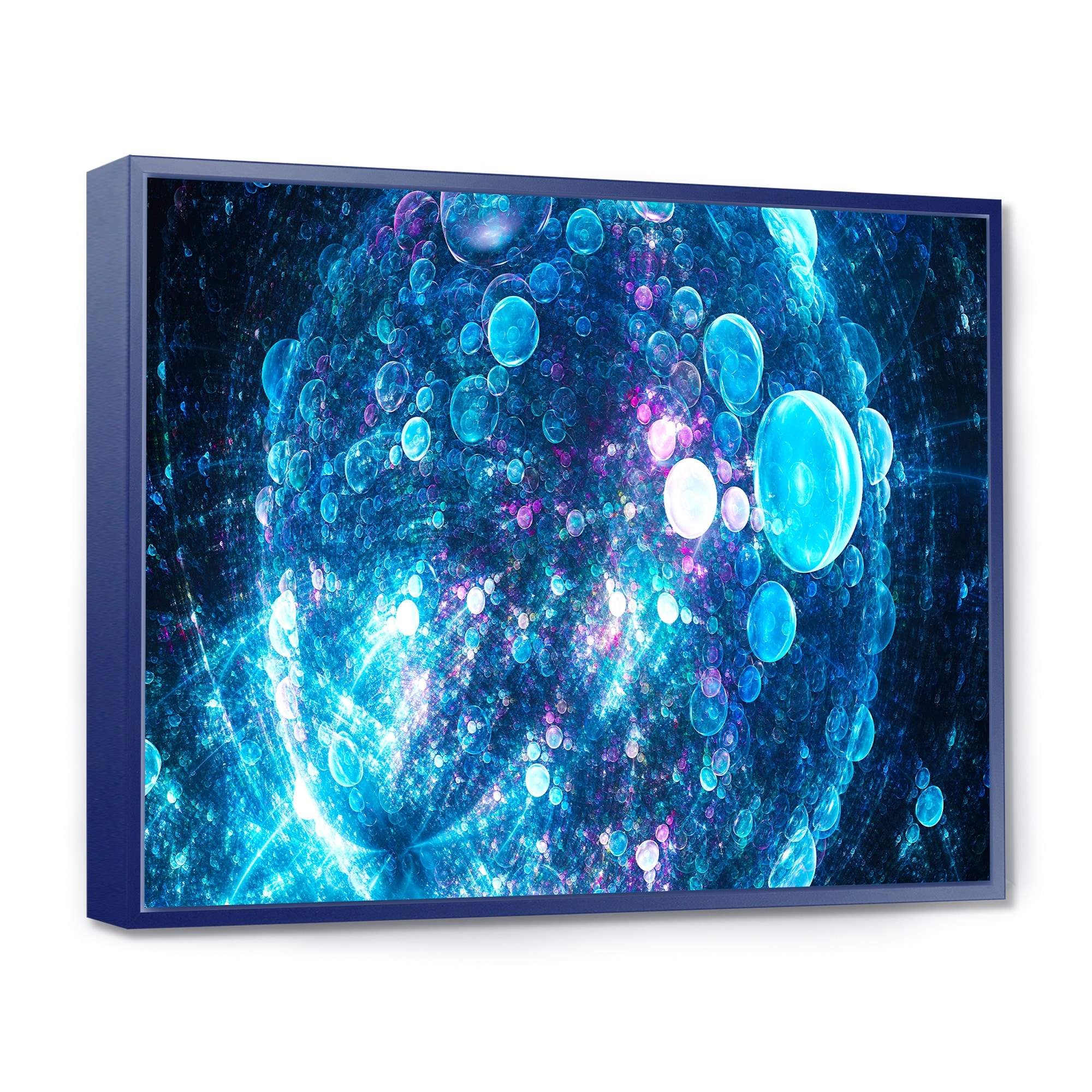 Designart "Blue Spherical Planet Bubbles" Abstract Framed Canvas Art Print