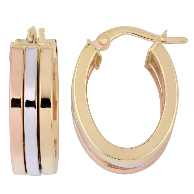 Fremada Italian 14k Tri-color High Polish Triple Oval Hoop Earrings