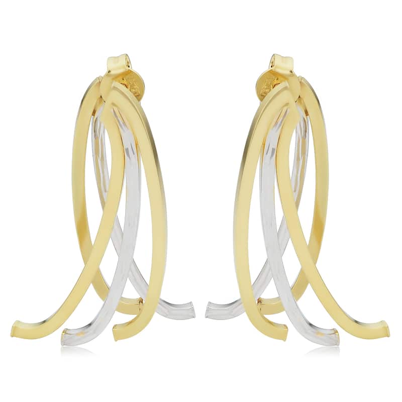 14k Two-tone Gold Polished Diamond-cut Triple Curved Bar Front-back Earrings