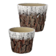 Set of 2 White and Brown Frosted Bark Christmas Pots 9.75"