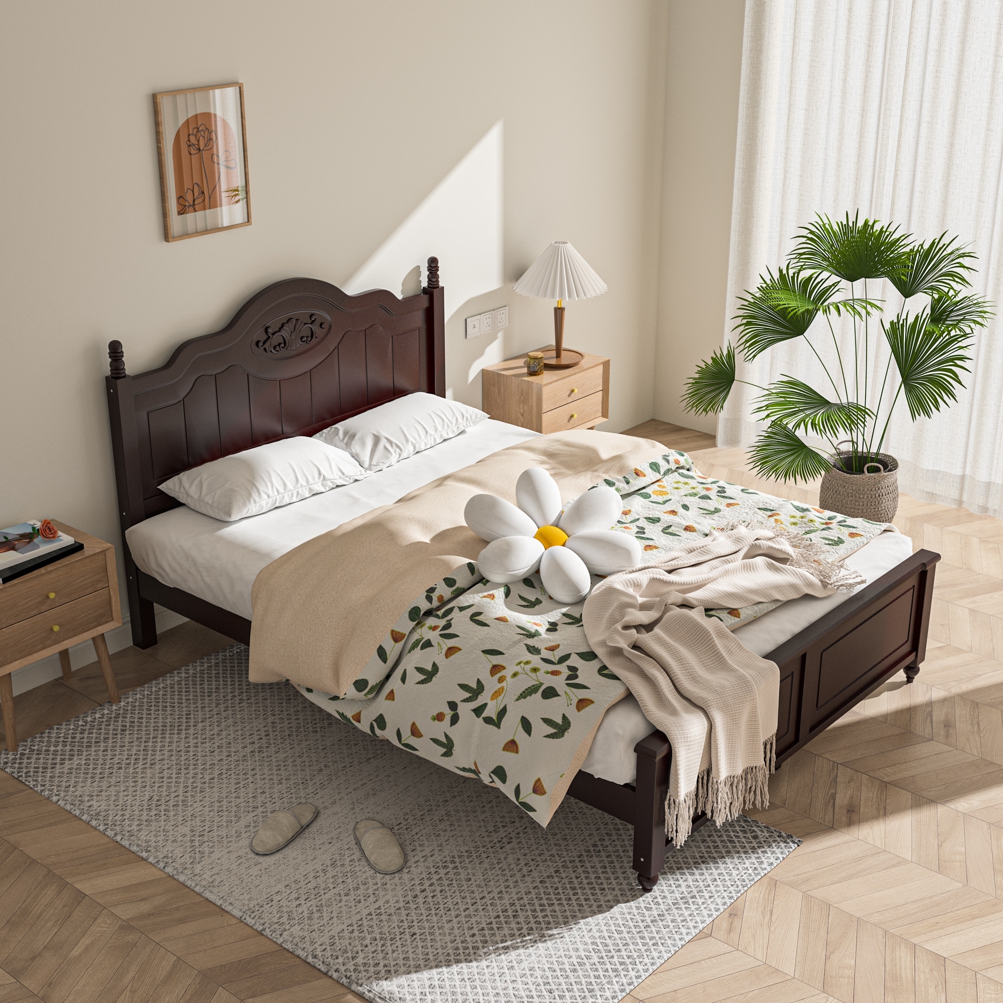 Modern Solid Wood Queen Platform Bed, Elegant and Versatile Bed Frame