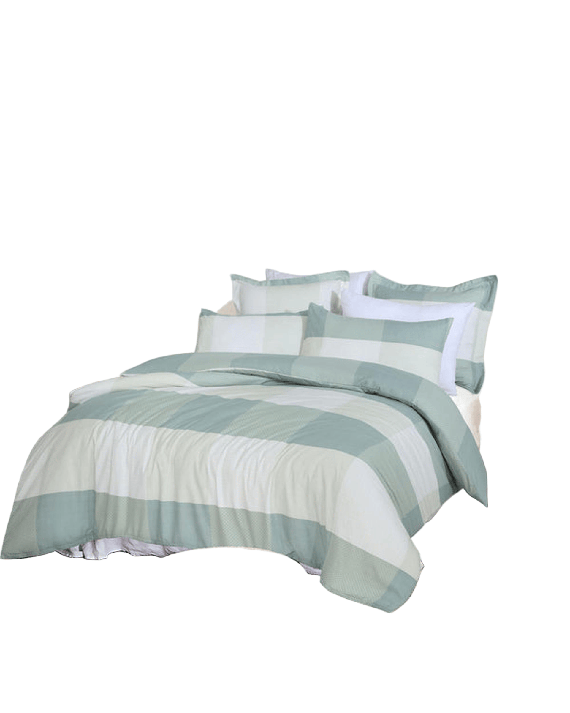 Amsons Quilt Cover Set with Extra Standard Pillow Covers - Sage Check