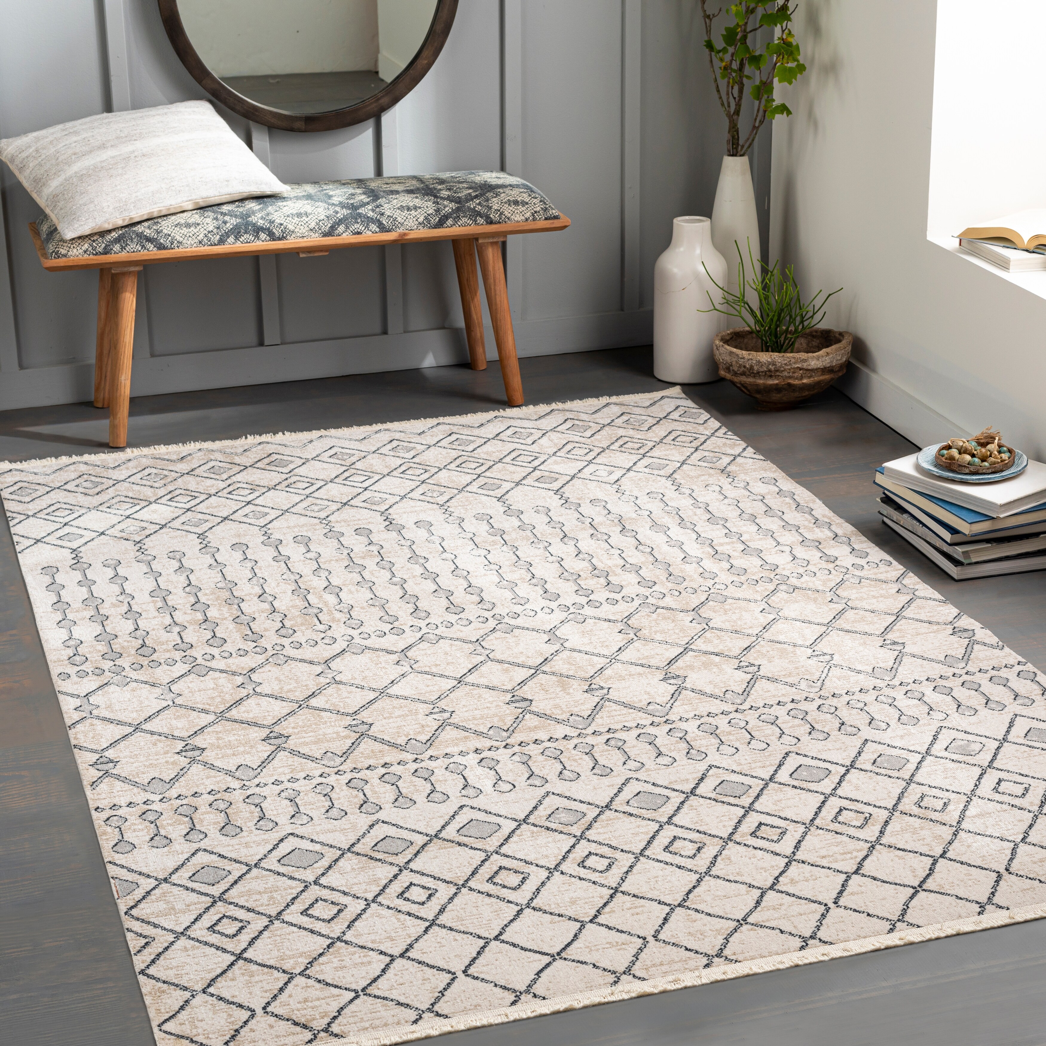 Porch & Den Quince Distressed Diamond Band Area Rug