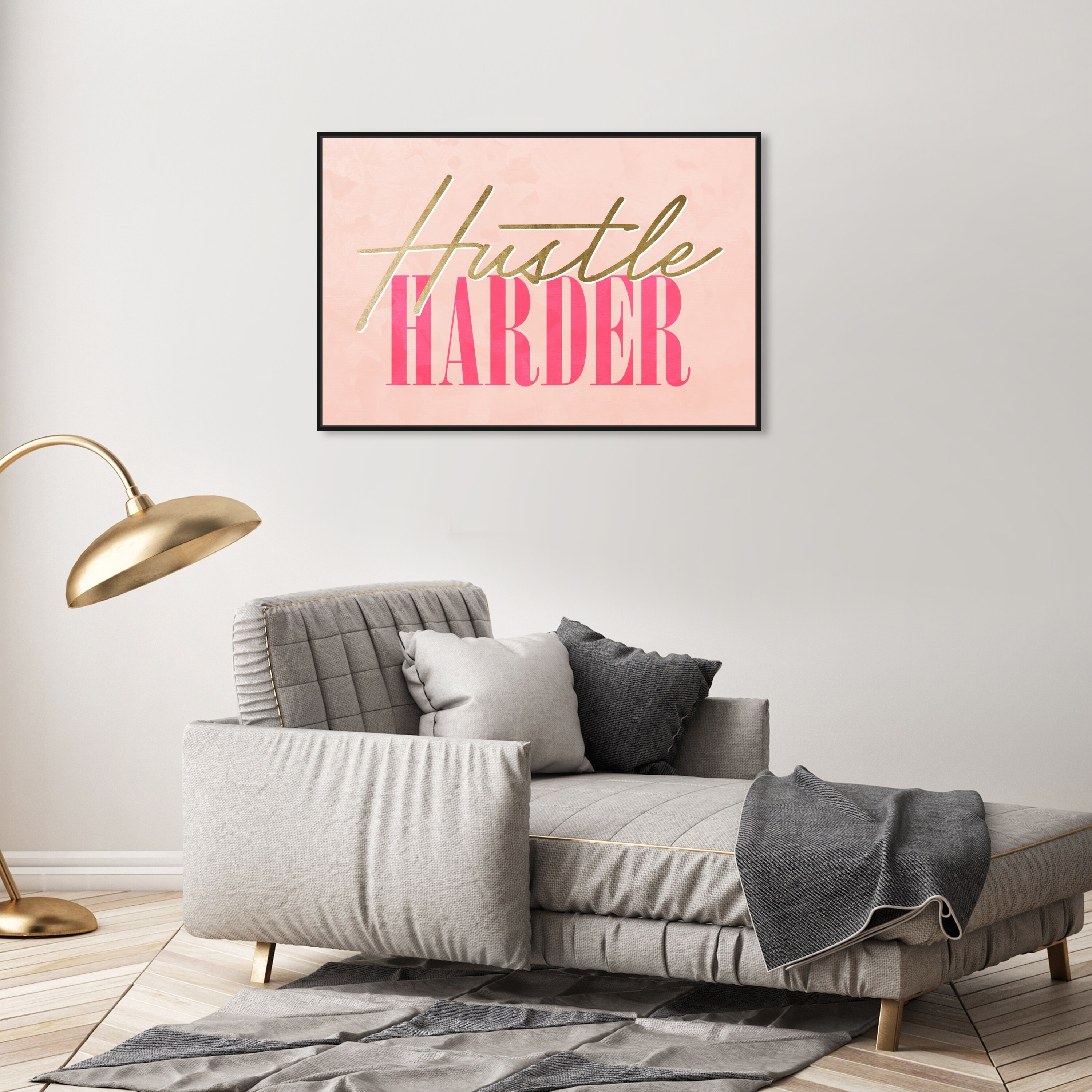 Oliver Gal 'Hustle Harder Bold Pink' Typography and Quotes Wall Art Framed Canvas Print Inspirational - Pink, Gold