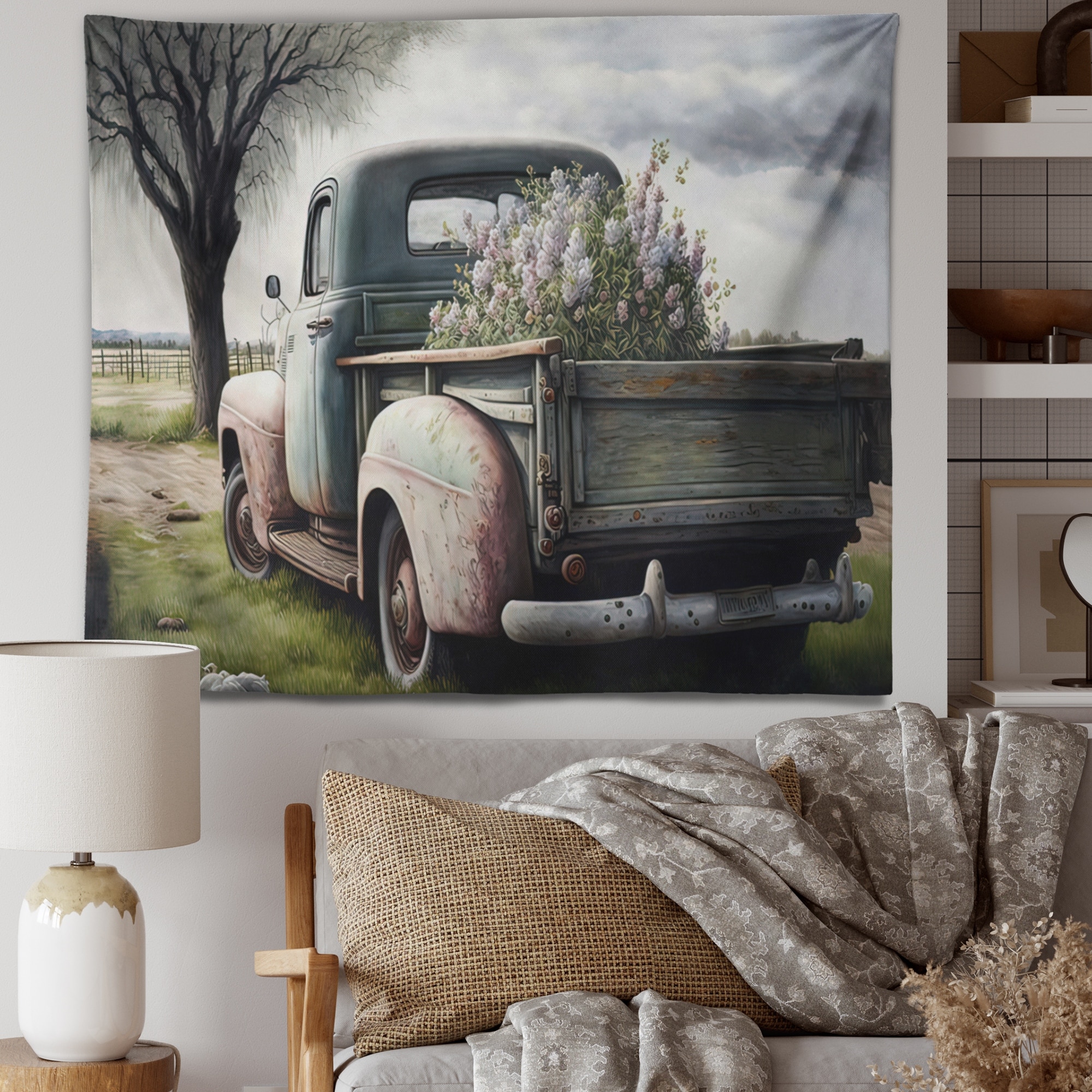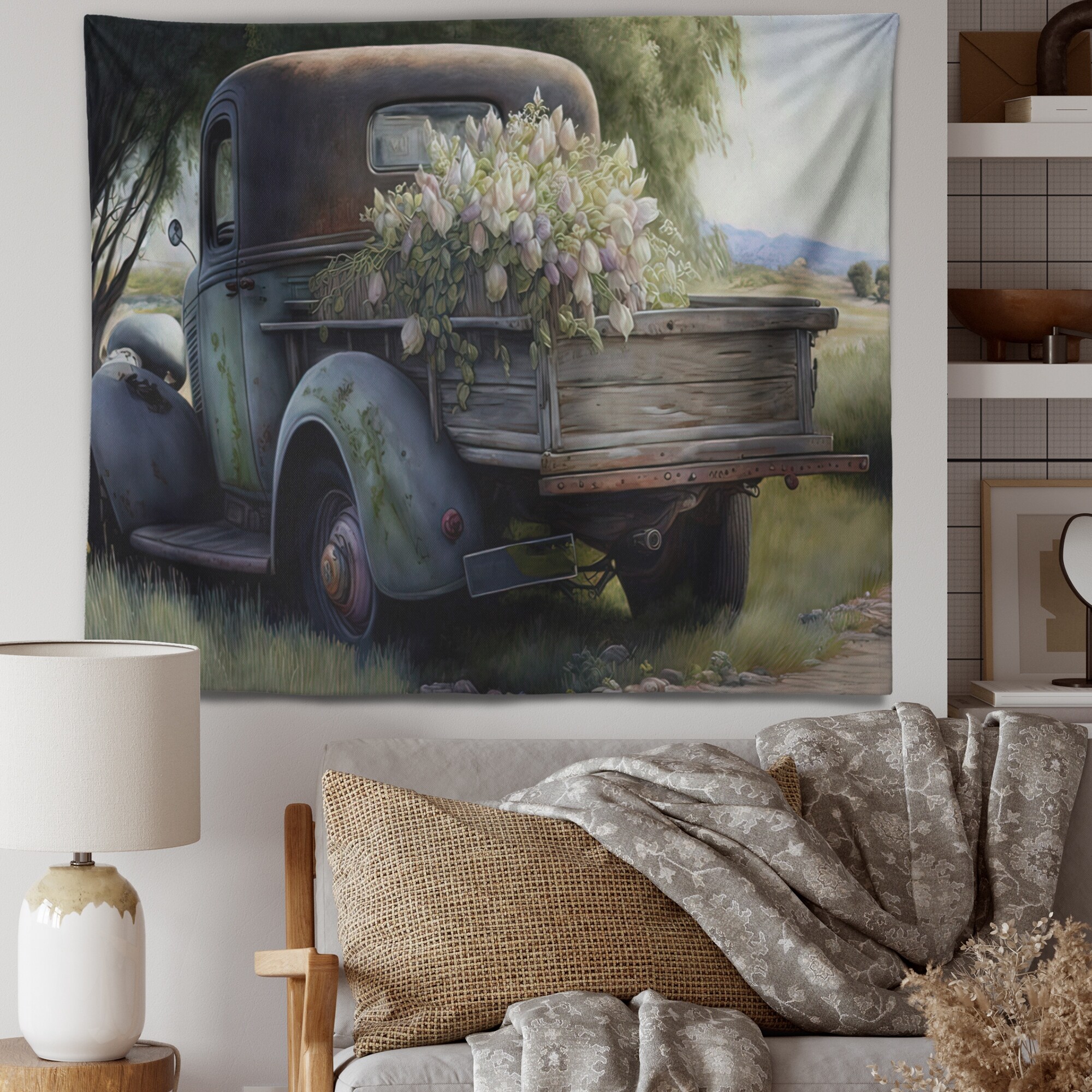 Designart 'Barn Flower Delivery Truck V' Barn Farm Ranch Wall Tapestry