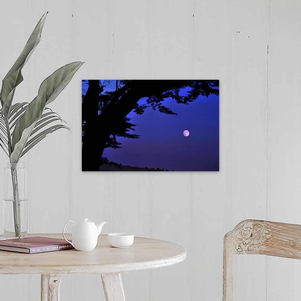 "Full moon seen rising through branches of Monterey Cypress at Sea Ranch, Cali" Canvas Wall Art