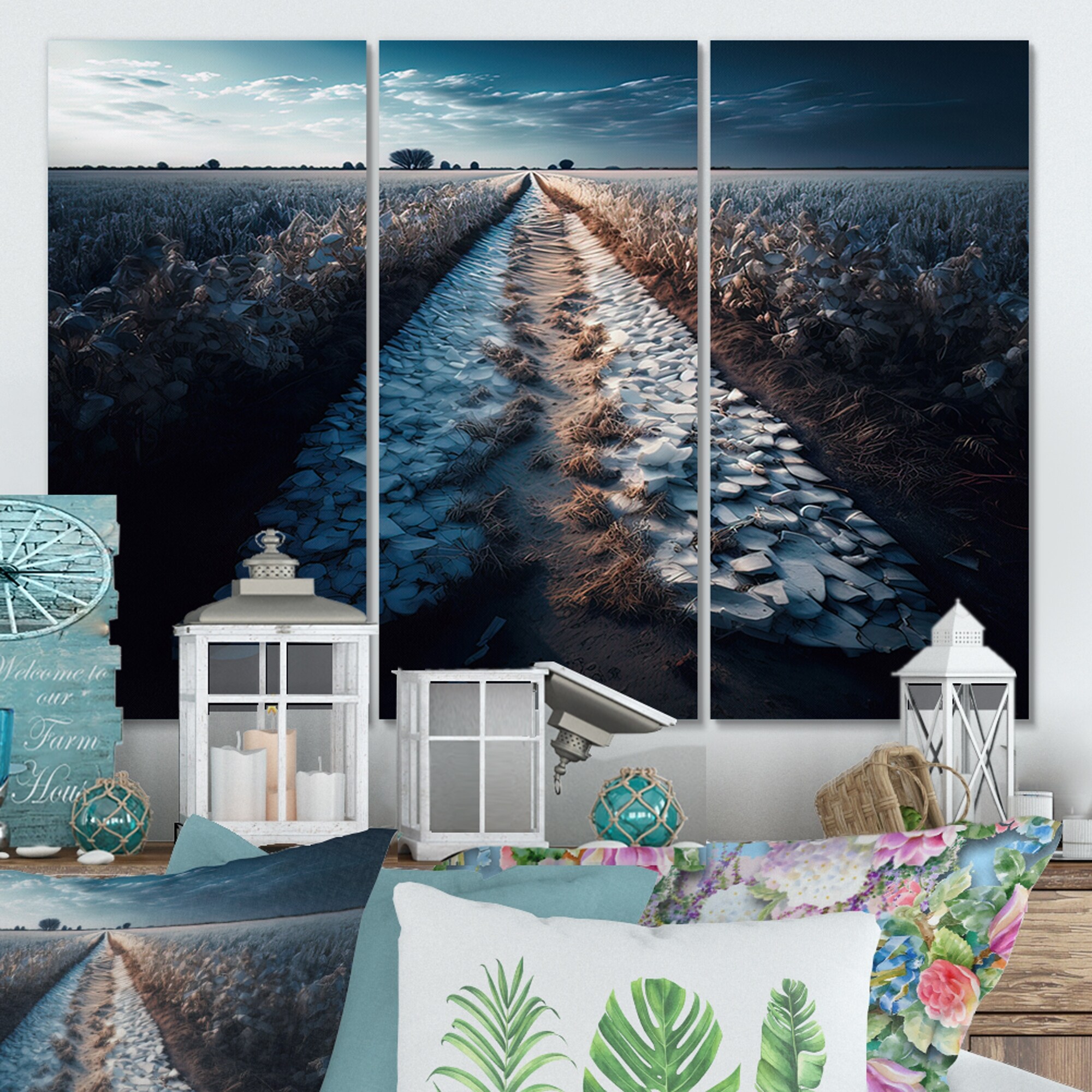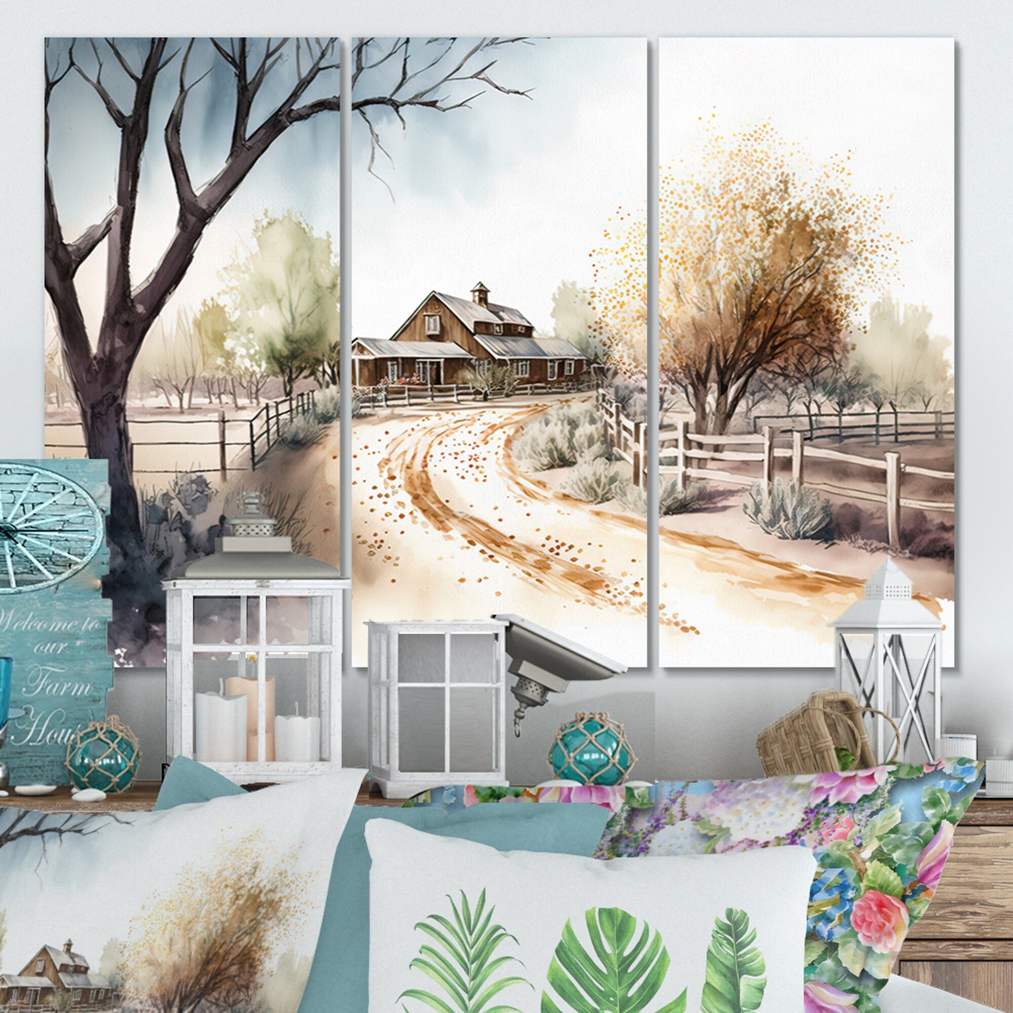 Designart "Path In the Middle of a Field II" Barn Farm Ranch Canvas Art Print - 3 Panels