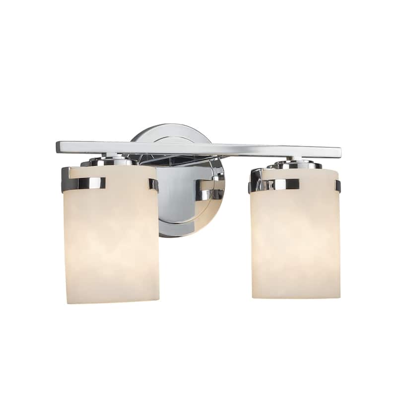 Justice Design Clouds Atlas 2-light Polished Chrome Bath Bar, Clouds Cylinder - Flat Rim Shade
