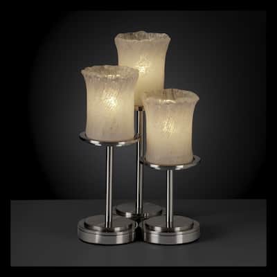 Justice Design Veneto Luce Dakota 3-light Brushed Nickel Table Lamp, Whitewash Cylinder - Rippled Rim Shade