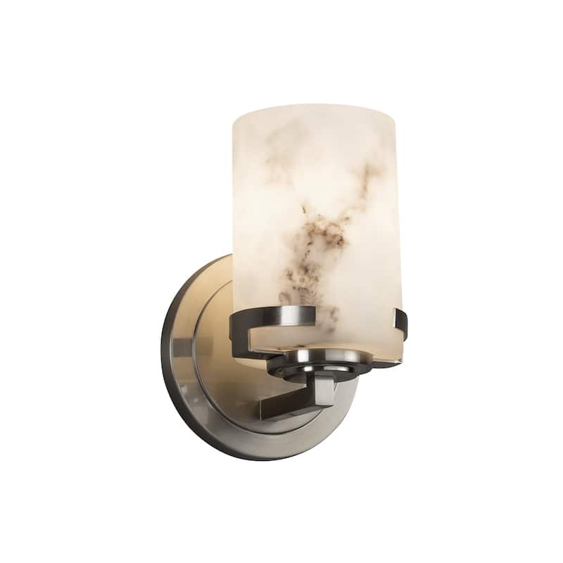 Justice Design LumenAria Atlas 1-light Brushed Nickel Wall Sconce, Faux Alabaster Cylinder - Flat Rim Shade