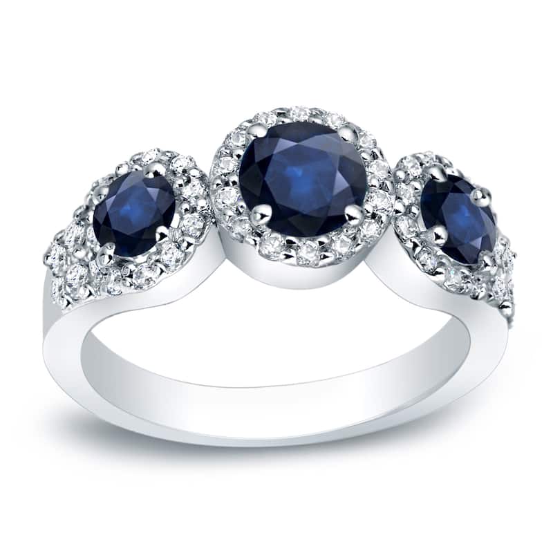 Auriya Vintage Inspired 1ct TDW 3-Stone Diamond Halo Engagement Ring 14k Gold