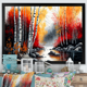 Designart "Red And Orange Birch Trees By the River" Landscape Framed Art Print