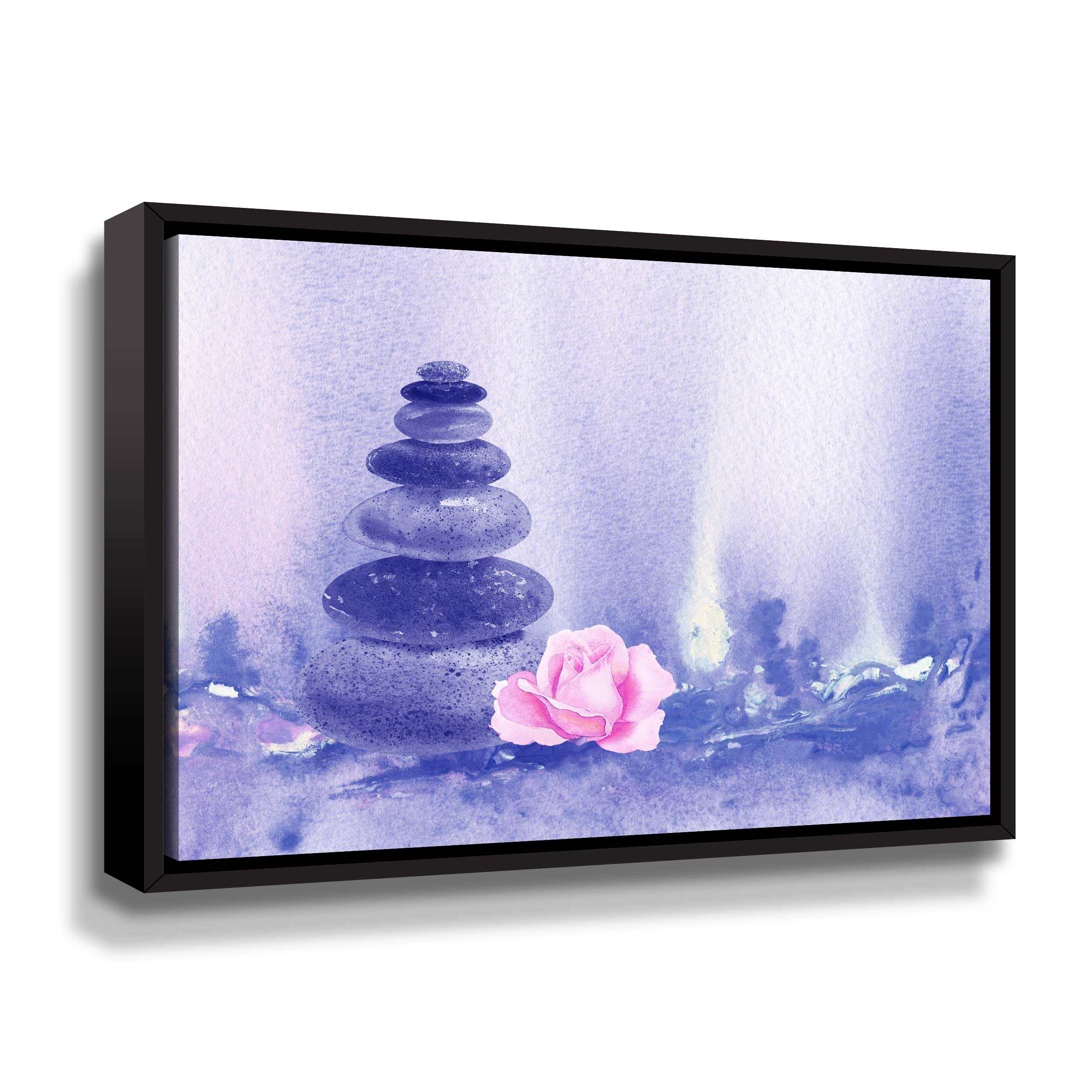 Meditative Calm Peaceful Zen Rocks Cairn With Pink Rose Flower Purple Gallery Wrapped Floater-framed Canvas by Irina Sztukowski
