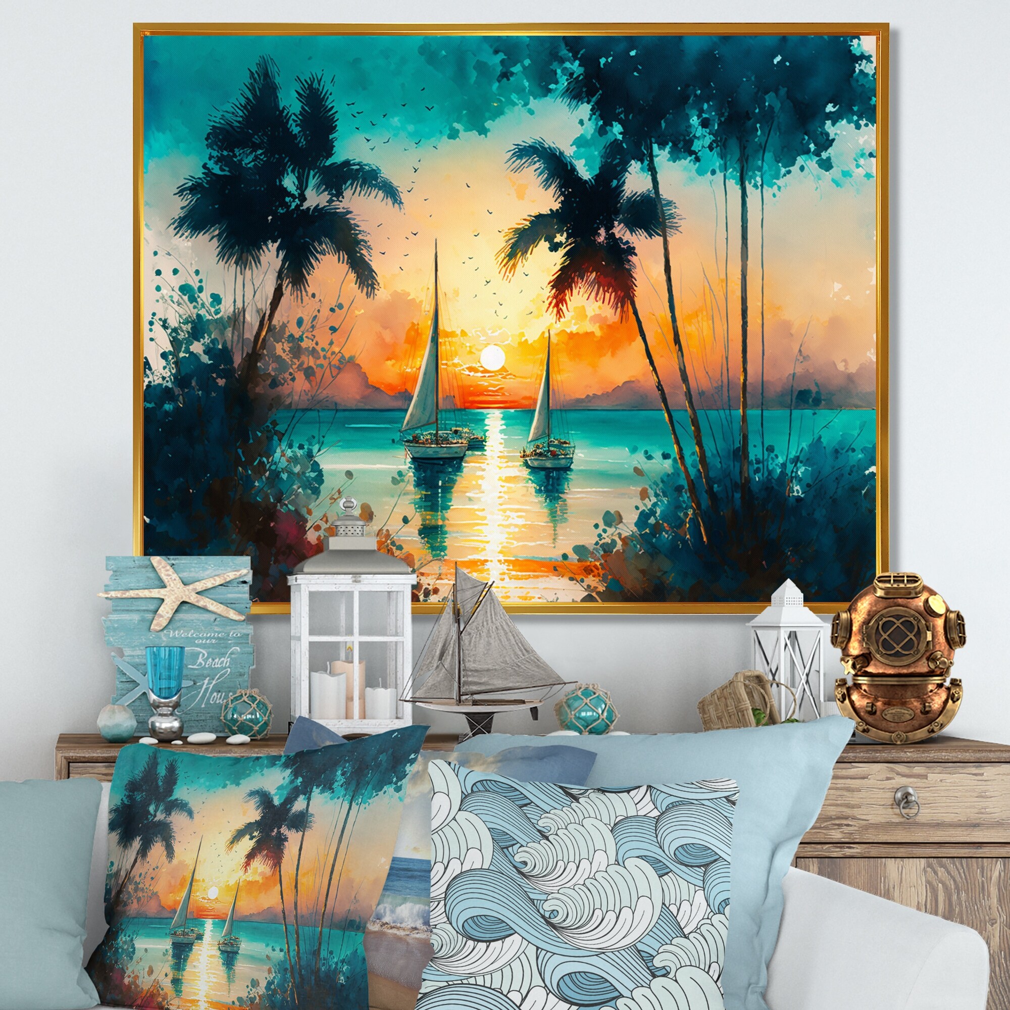 Designart "Sailboat During Exotic Sunset V" Coastal Boat Framed Canvas Wall Art Print