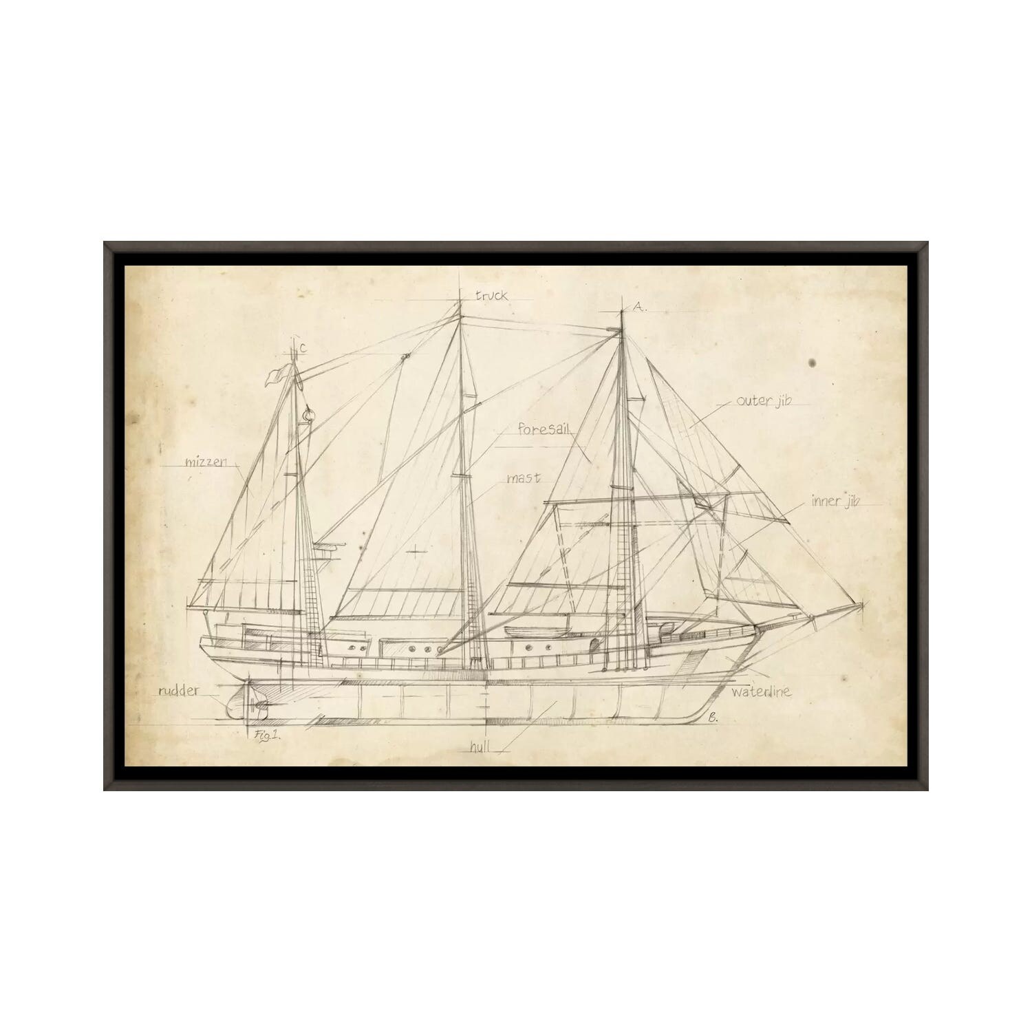 iCanvas "Sailboat Blueprint IV" by Ethan Harper Framed Canvas Print
