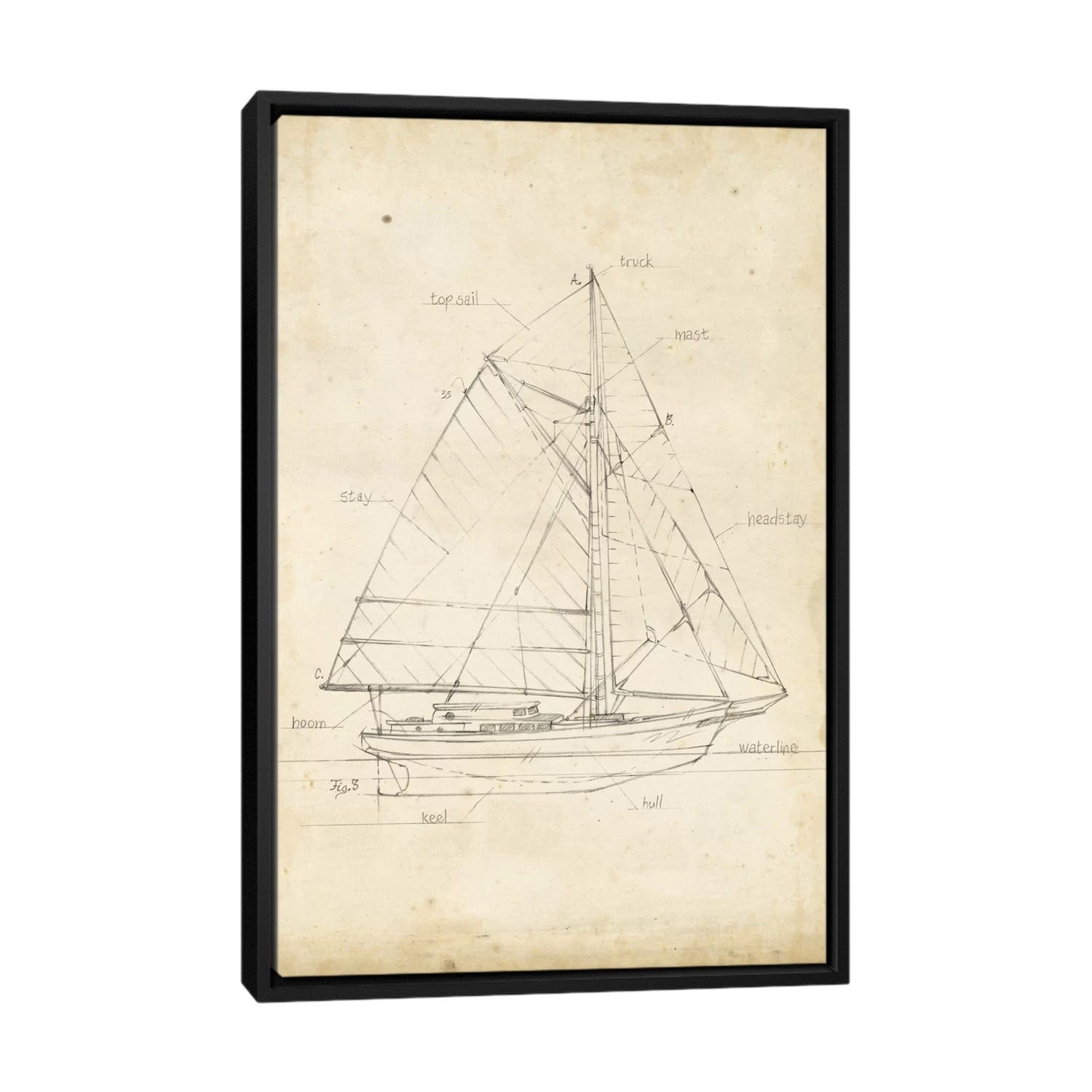 iCanvas "Sailboat Blueprint III" by Ethan Harper Framed
