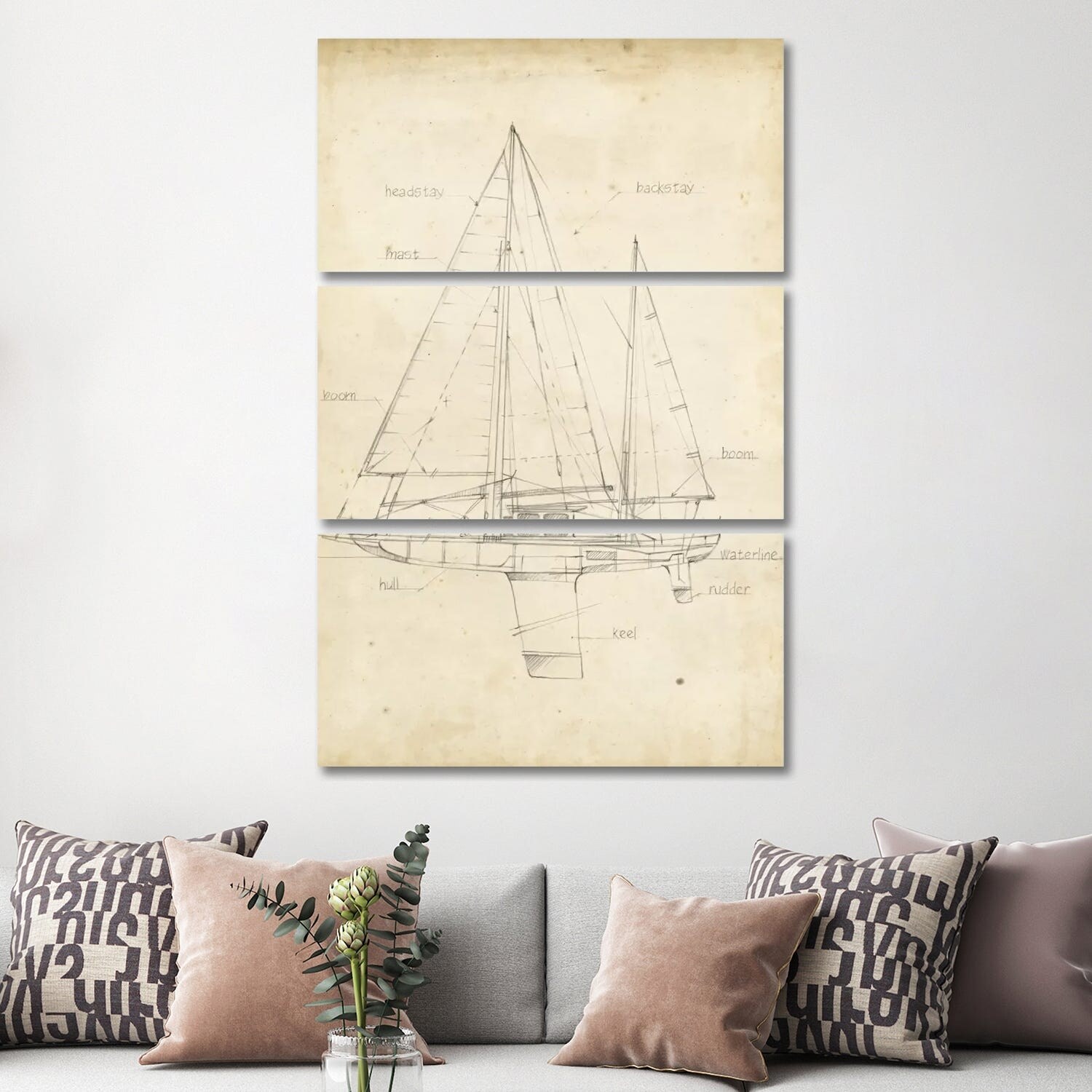 iCanvas "Sailboat Blueprint IV" by Ethan Harper 3-Piece Canvas Wall Art Set