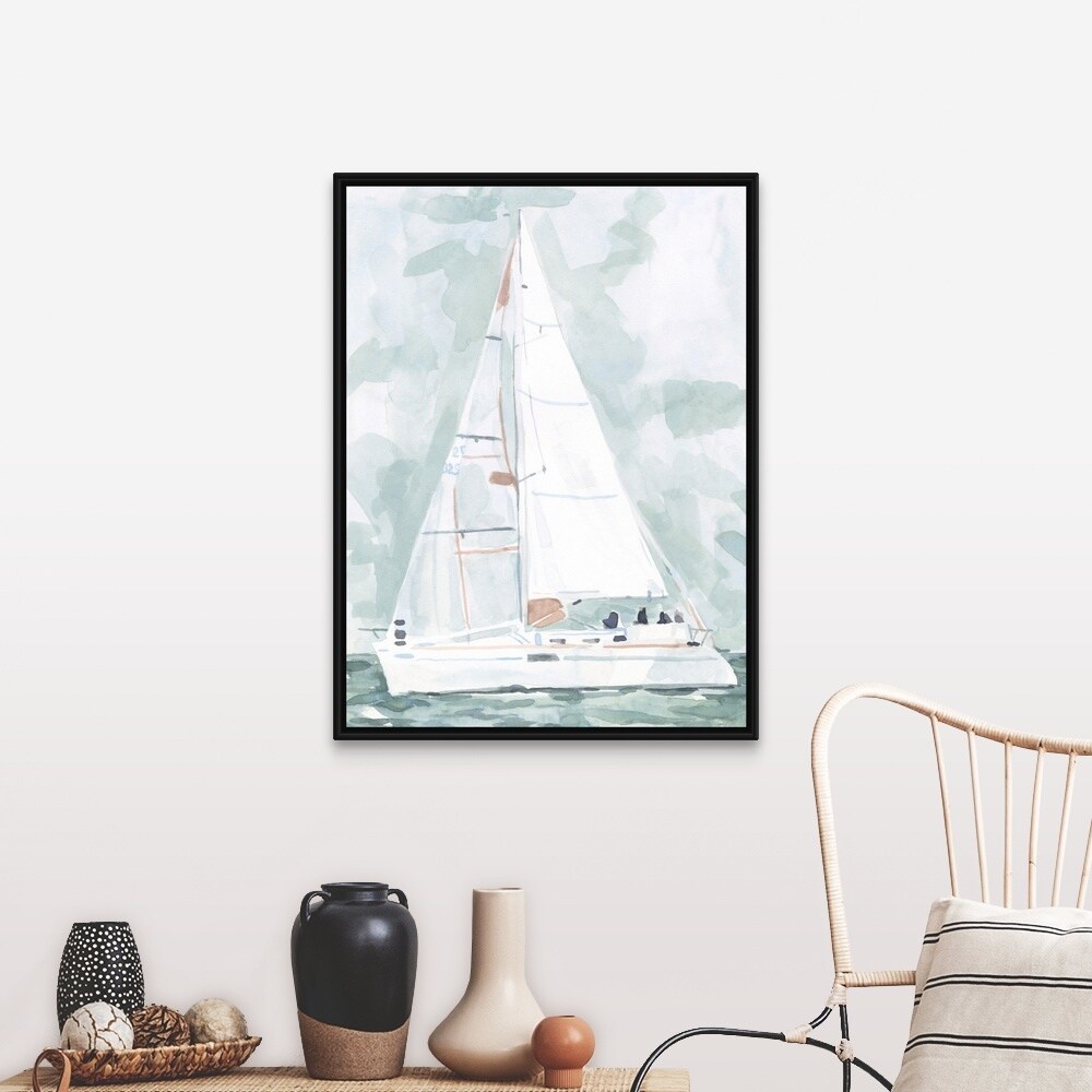 "Soft Sailboat II" Black Float Frame Canvas Art