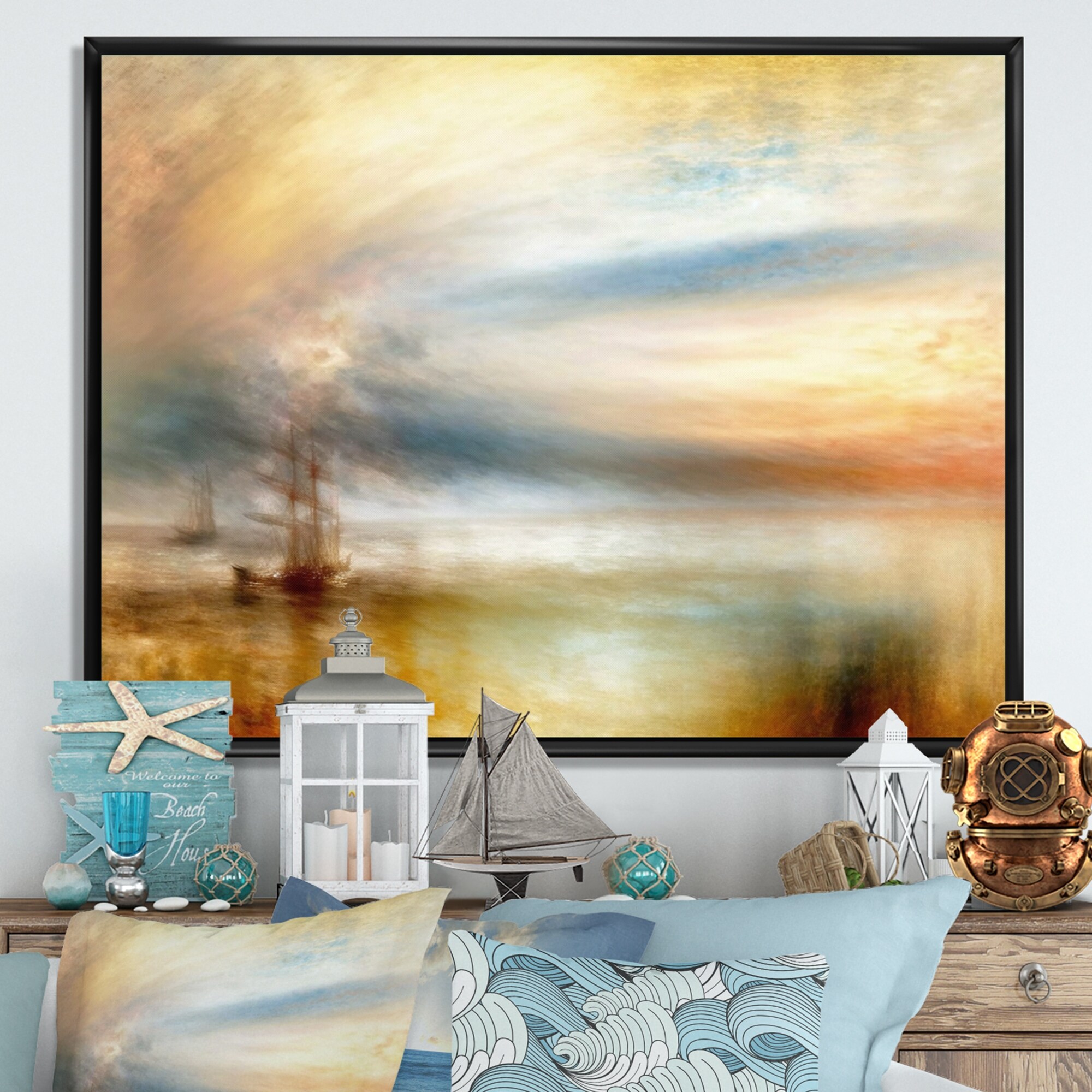 Designart "Sailboat During Exotic Sunset " Coastal Boat Framed Canvas Wall Art Print