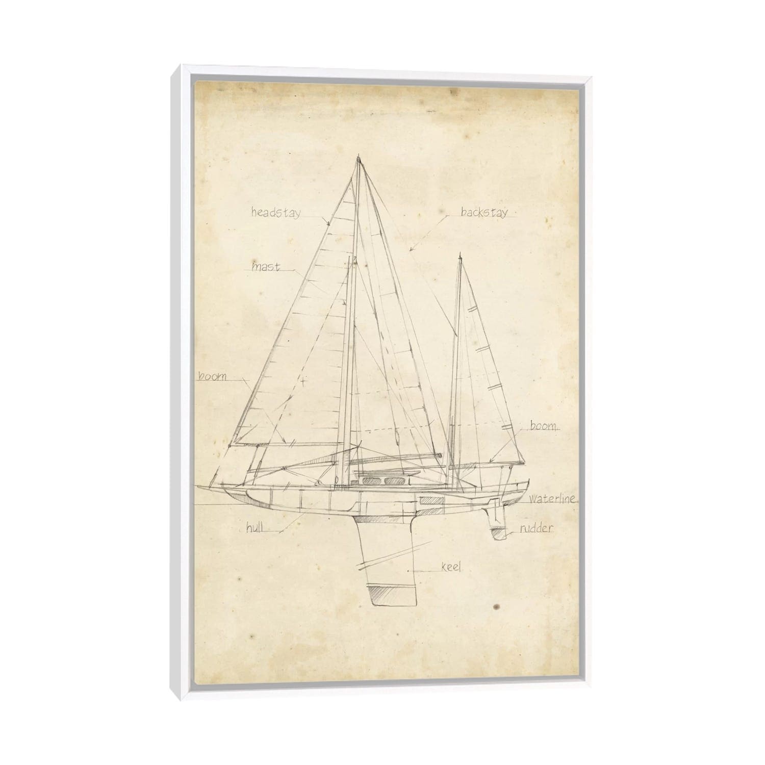 iCanvas "Sailboat Blueprint II" by Ethan Harper Framed