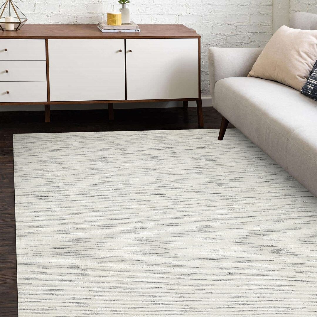 Sierra Handmade Modern Contemporary Striped Ivory Area Rug