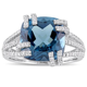 Miadora Signature Collection 14k White Gold London-Blue Topaz & 3/4ct TDW Diamond Split Shank Cockta - Blue