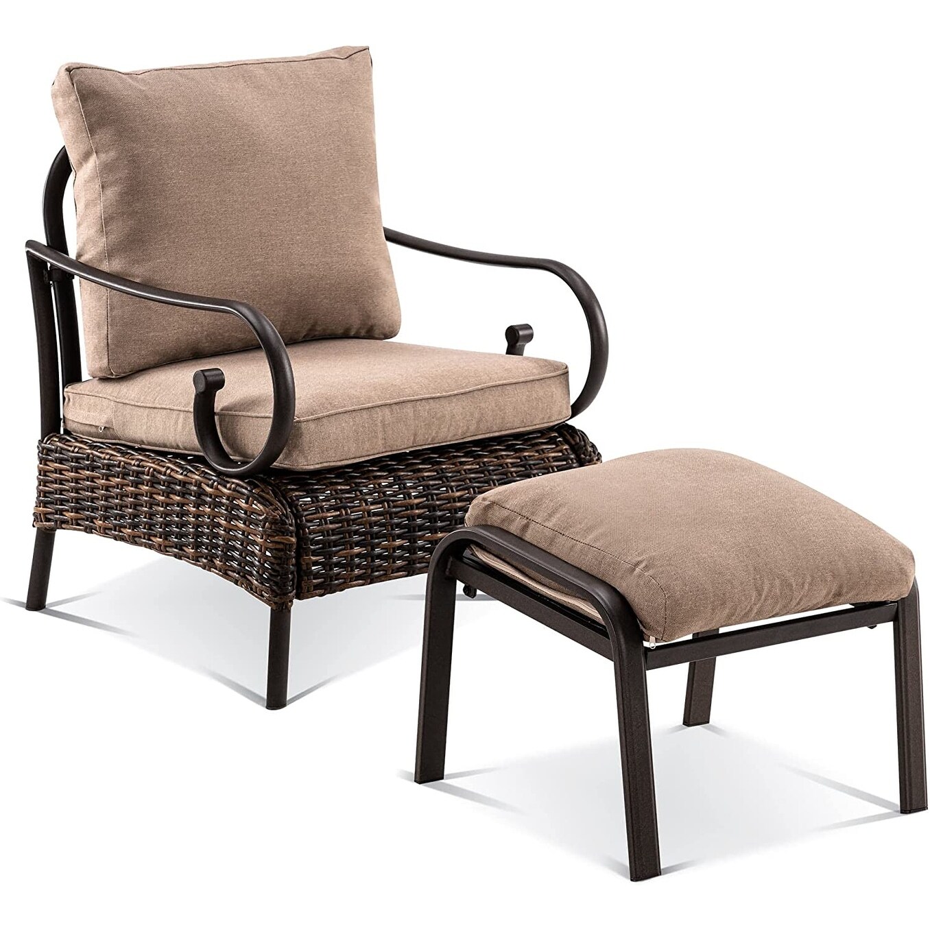 ivinta Outdoor Chair with Ottoman, Patio Wicker Chair with Cushions - 26.7"W x 29.9"D x 28.4"H