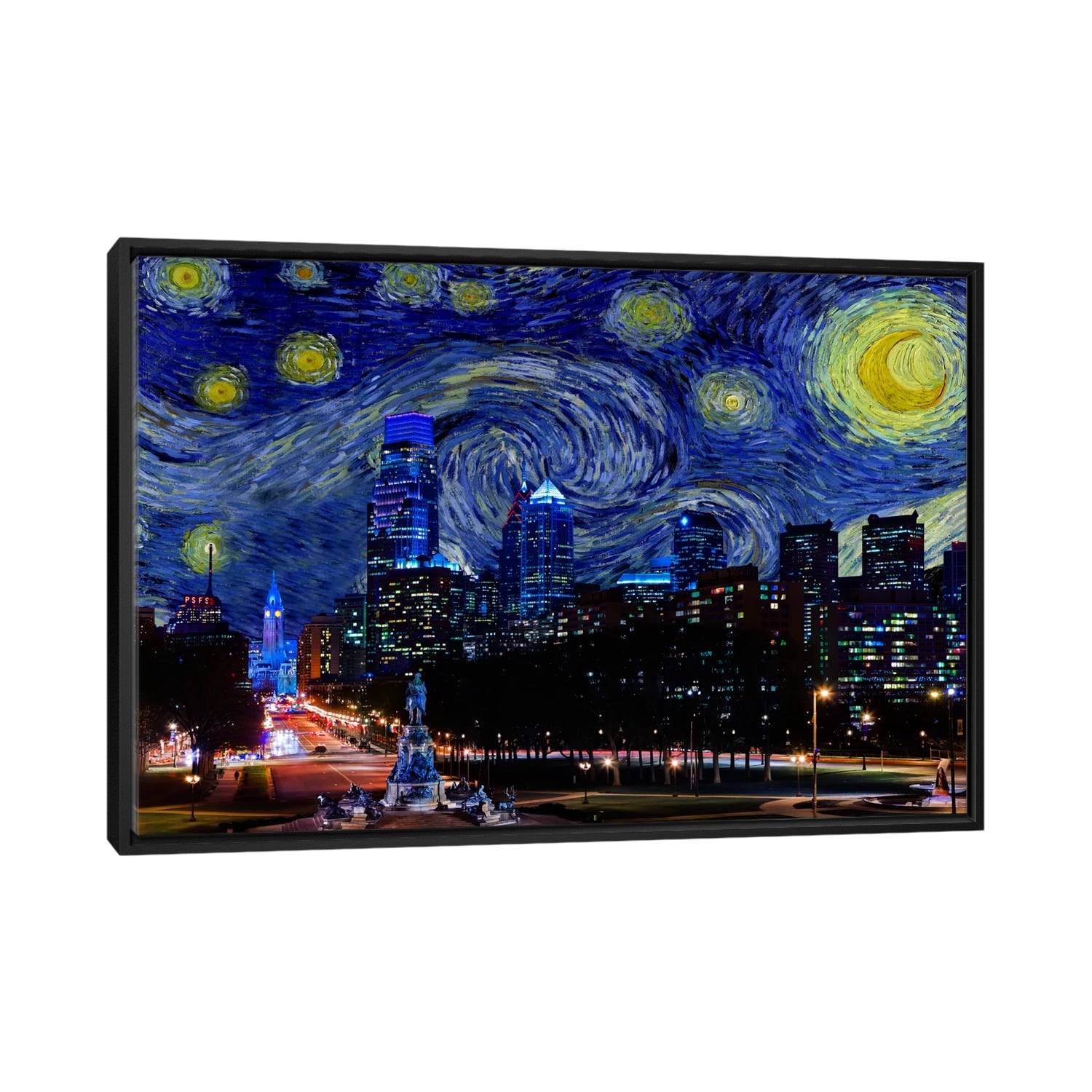 iCanvas "Philadelphia, Pennsylvania Starry Night Skyline" by 5by5collective Framed Canvas Print