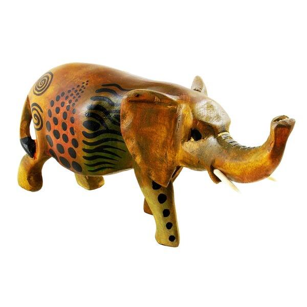 Handmade Colorful Elephant Albesia Wood Statue (Indonesia)
