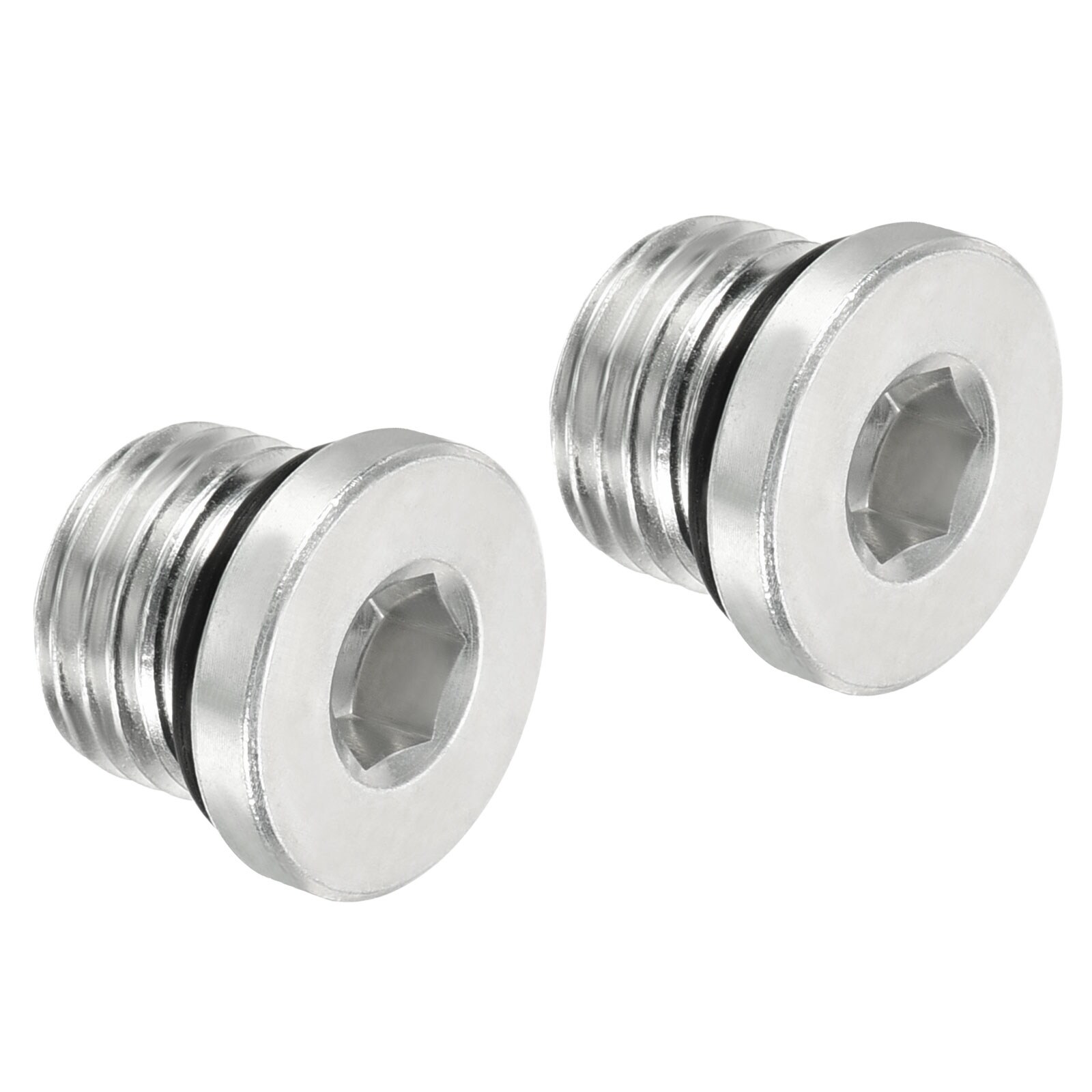 M10*1.25 Hex Head Pipe Fitting Plug, 2 Pack Male Thread 45# Steel Plug - Silver Tone