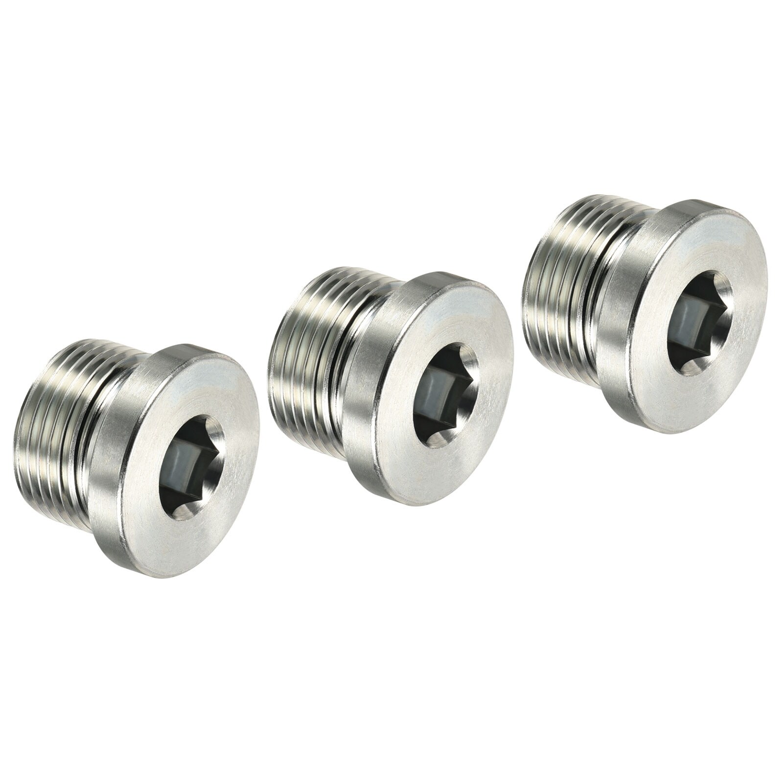 3/8-24UNF Hex Head Pipe Fitting Plug, 3 Pack Male Thread 45# Steel Plug - Silver Tone