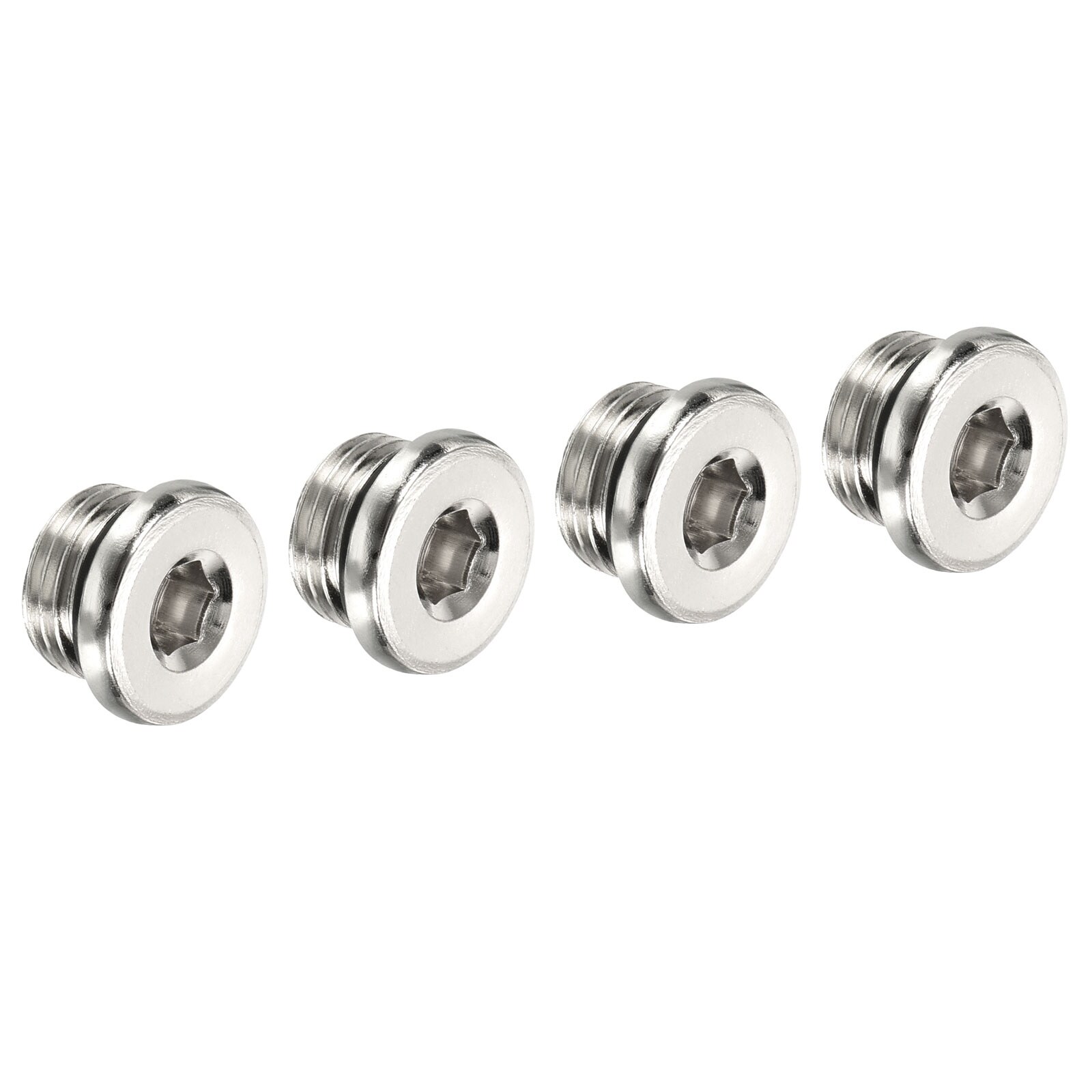 G1/8 Hex Head Pipe Fitting Plug, 4 Pack Male Thread 45# Steel Plug - Silver Tone