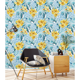 Blue Leaves and Yellow Flowers Peel and Stick Wallpaper